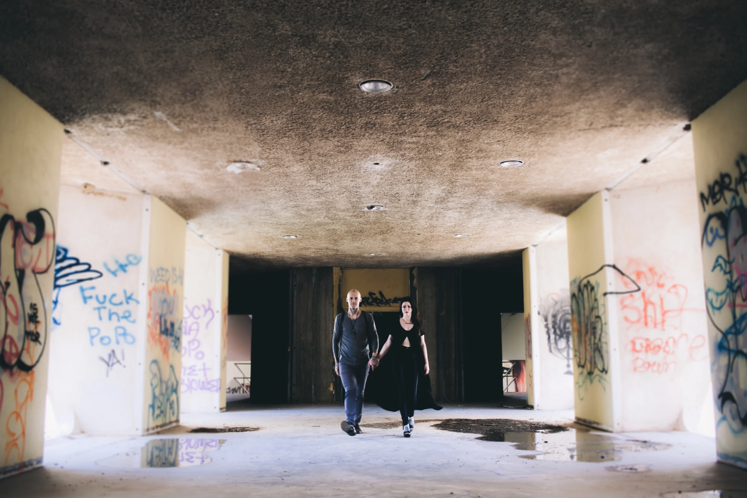 /The Poes are one badass, game-changing couple: she a Surgical Trauma nurse by night and he a University professor of Social Justice by day and goth DJ by night. Their life breathes an unconventional yet genuine aesthetic, remaining 110% true to themselves in everything they do and create in their world together. So naturally for their anniversary shoot they chose some pretty off-beat locations that were meaningful to the Poes if no one else; starting with an abandoned racetrack and ending inside of and on top of the warehouse they used to reside in. This power couple's love remains deep, inspiring and undying.