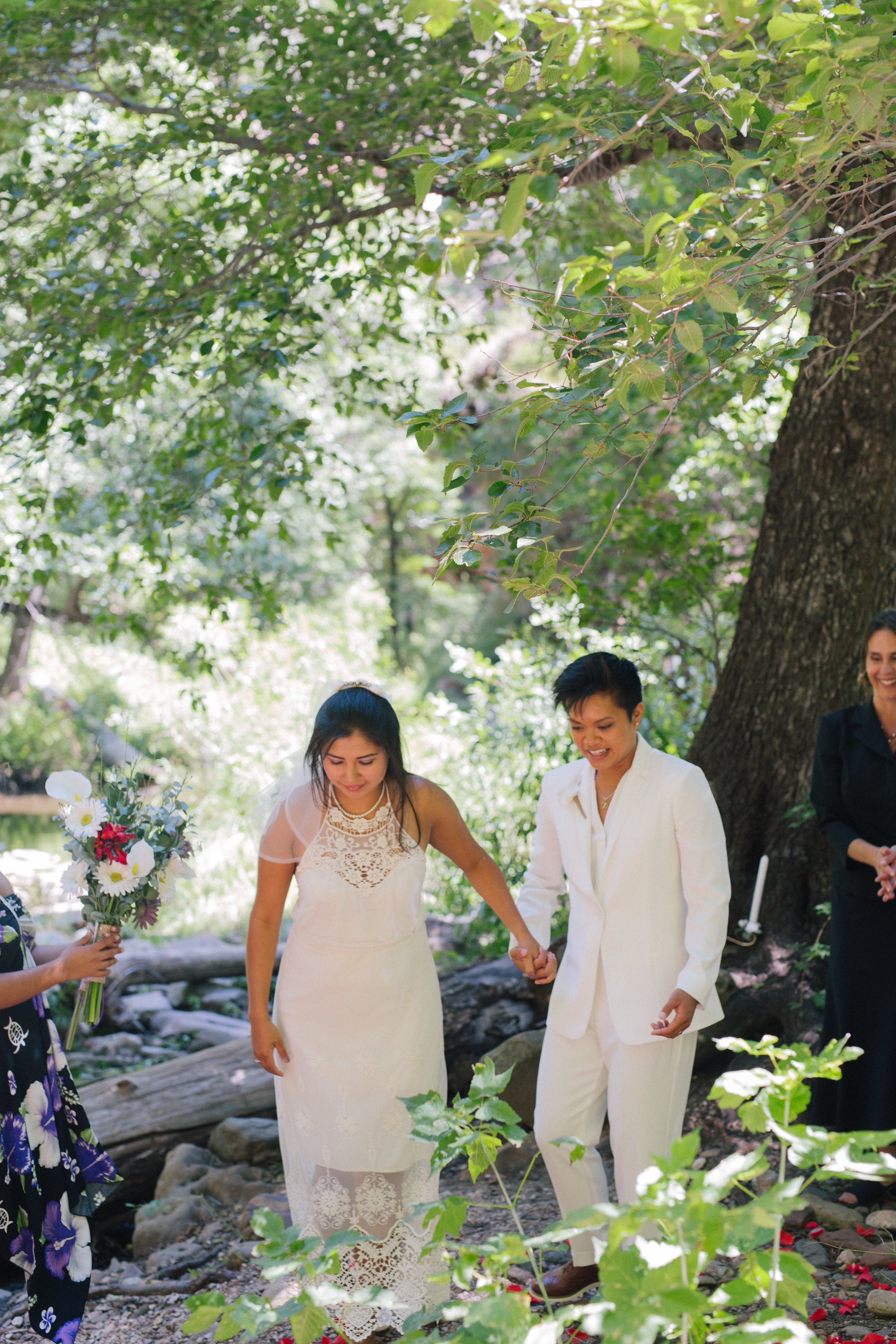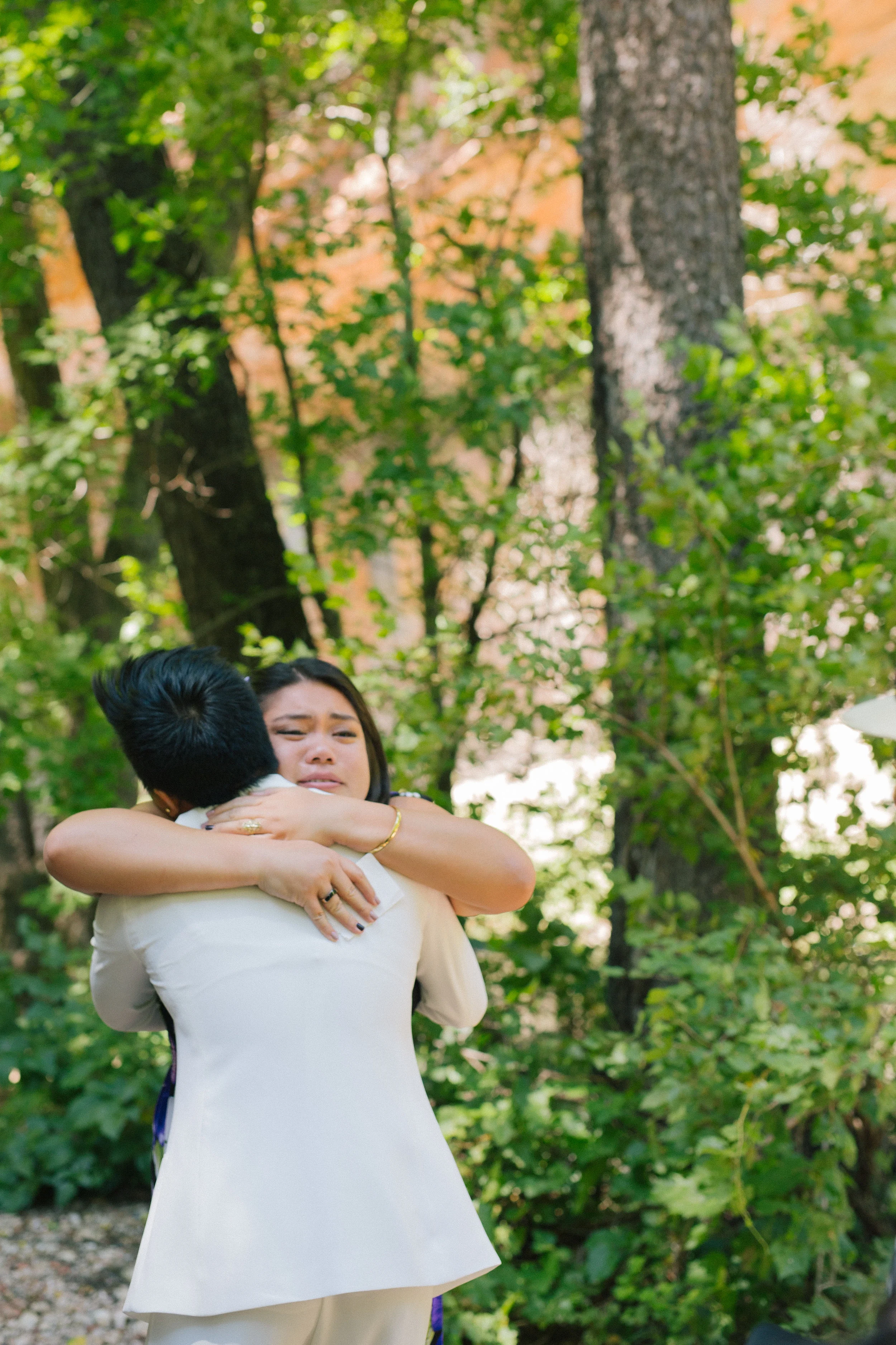 /Leonor and Katryna have a soft, quiet, comfortable but strong love. I could see it in the way that Leonor's eyes sparkled when she looked at Katryna when she was getting animated over talking about some adventure, or the way Katryna's hand held onto Leo's. They cheer each other on through challenges and hardships – through graduate school life and military life and everything else. Katryna, a pilot instructor, volunteers to fly dogs from overcrowded shelters across the country with Leonor happily keeping the dogs comfortable in-flight. They have five dogs between the two of them and are more adventurous than even these elopement photos would suggest. Katryna is the live-life-to-the-fullest, no-holds-barred type of soul, with Leonor, her strong champion and companion, quietly but equally as passionate for life.