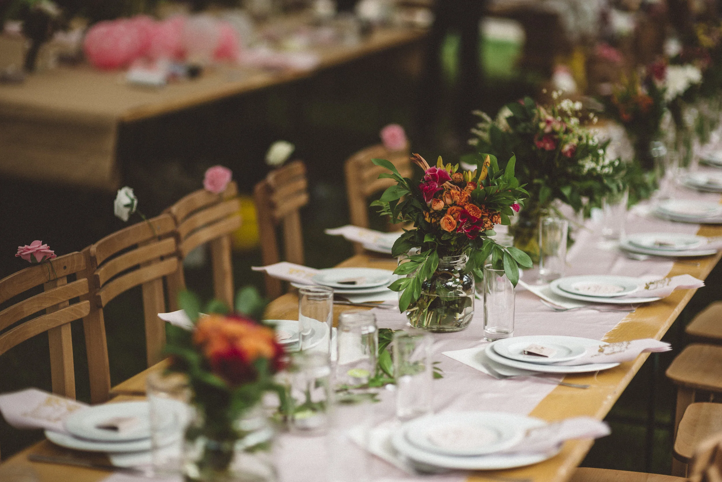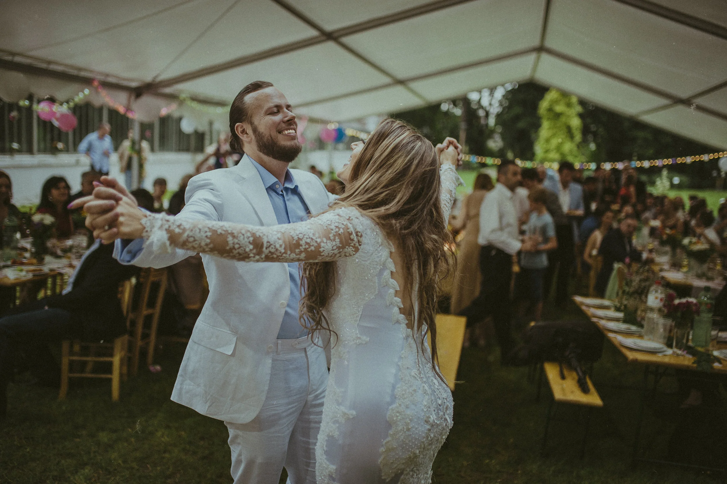 Many parts of the wedding were DIY — from the custom designed dress that we bought the fabrics and appliqué for, to the unique wedding invitations, that my parents, who are well known painters, did. They made a different painting for each invite, the flower centerpieces were made with our own two hands, and we designed the cake among many other things. It was a gorgeous experience that we would love to relive every week, as we joke about all the time.