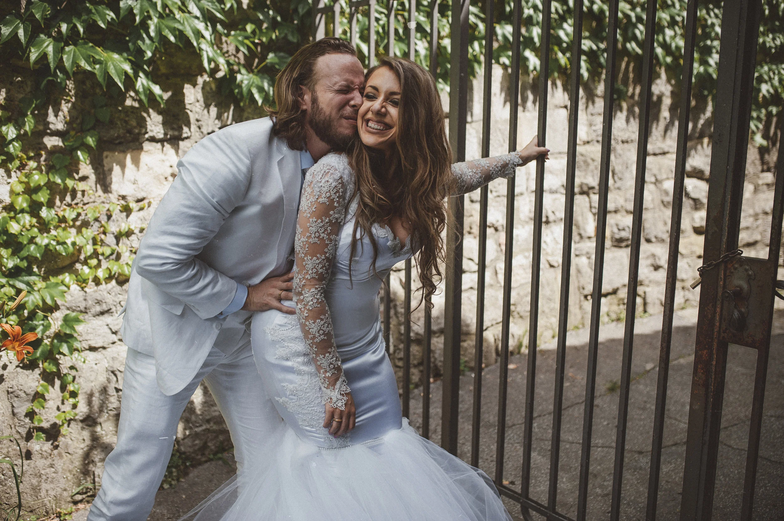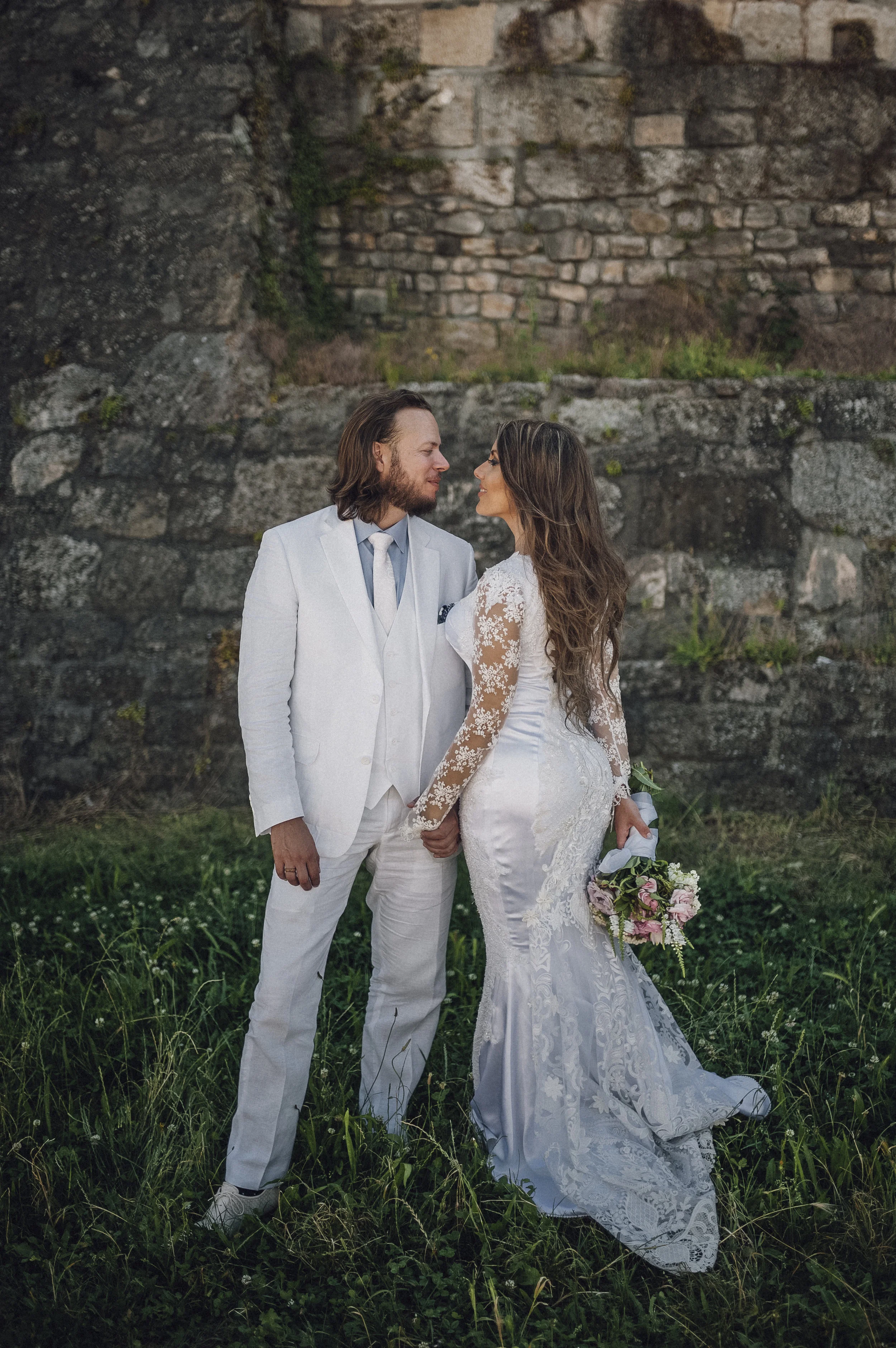 /Both my husband and I are jazz musicians; he was born in England and I in Serbia, but the path of jazz led us both to New York where we met for the first time at a jazz club. From the moment we started talking to each other we started falling in love. He is the most courageous and kind person I know. After the second time we actually saw each other, I was flying him out to Europe while I was on tour to have our first date. Everything after that moved quickly like a fairy tale.