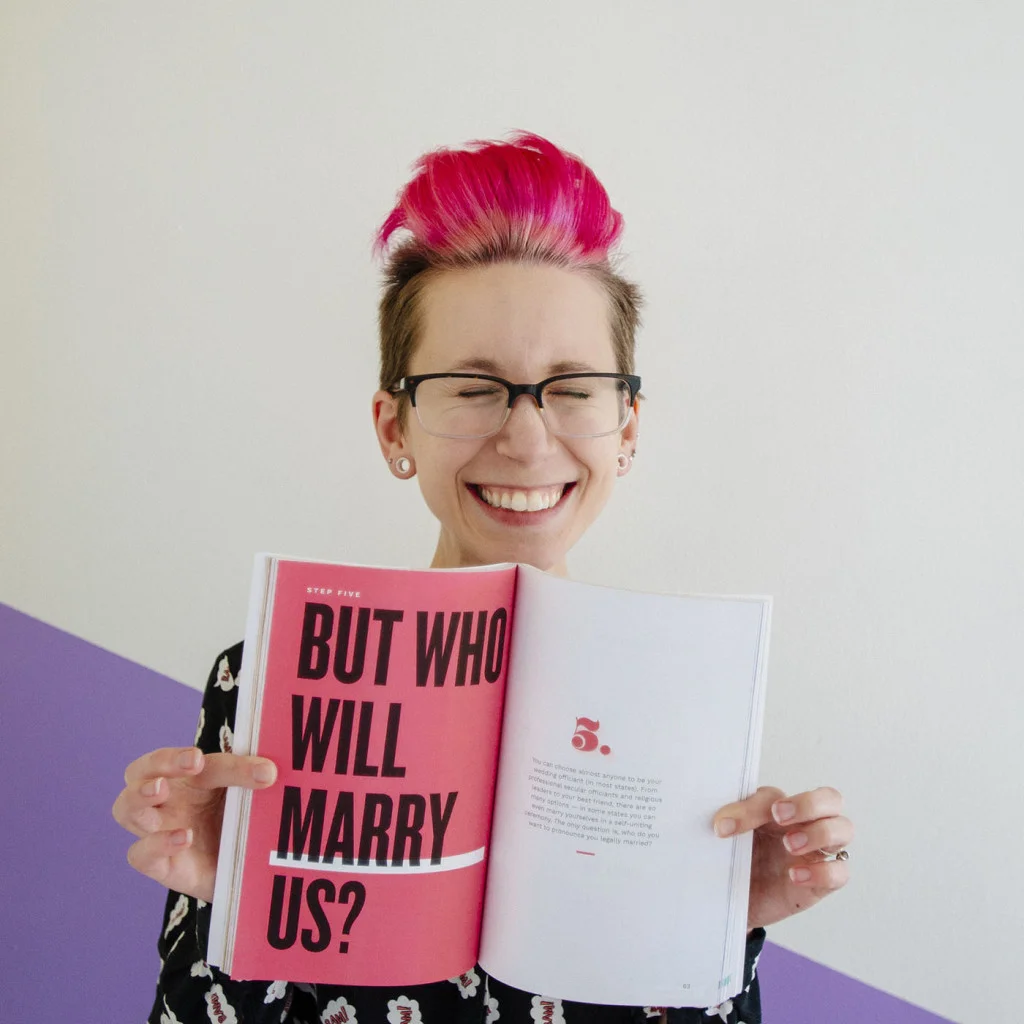 This book is one part tiny wedding planning guide, one part inspiration, and four parts color overload. Maggie's tone is super down-to-earth because she's really a no BS kind of gal. She feels pretty meh about the mega pressures of the wedding industry but she's all about self expression and adventure. Her company Pop! Wed Co. started blowing up the DC wedding scene as she and her partner began hosting pop up elopements in public spaces. With that kind of flexibility and few people to maneuver, they were capturing some awesome photos that have inspired many to remember what a "wedding" is really all about: two people. She's bringing the focus back on the couple, showing that elopements can be super fun, and challenging the idea that you have to go broke to have a worthy wedding. If you like real talk and consider you and your partner to be "awesome," this book was written for you.