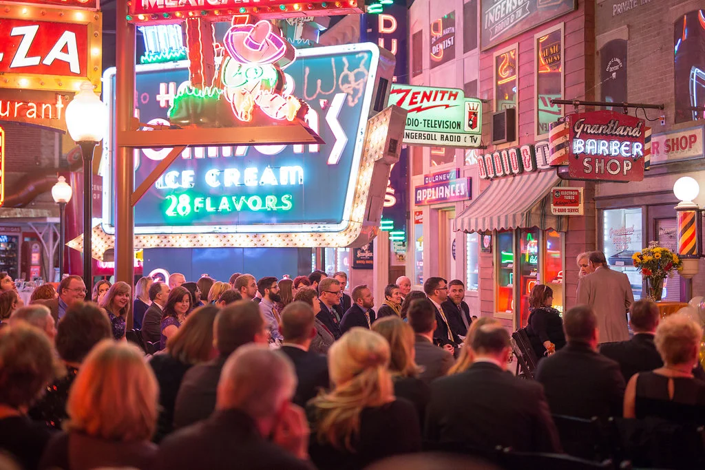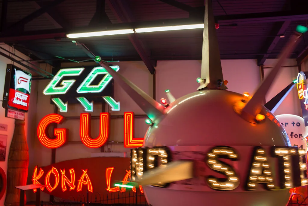 /Having your wedding in an Electric Sign Museum in the heart of Cincinnati and your portraits taken in the middle of a cemetery are some bold moves, but that's just what Megan and Dustin did with their day. Their whole day was cool, creative, and reflected the things they love. They had a small wedding party with just their best friends and kept everything as simple as it should be. I explained to Megan that fighting against the lighting inside of a neon sign museum would be pretty much worthless, and we might as well just embrace the warm glow of the lights — and she was all for it! The whole day was full of positive energy, laughter, and amazingly bright neon lights.