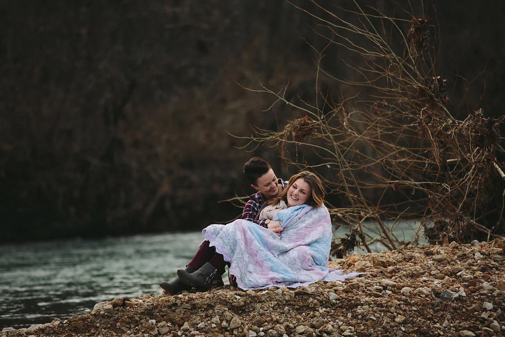 /When Felisity saw Laine for the very first time, the word "home" immediately came to mind. There was something that felt familiar about this vivacious actress with the killer smile and fun-loving spirit. And for Laine, Felisity's sense of adventure and affectionate personality inspired her to chase new experiences. During hiking trips and romantic in-home dates, Laine and Felisity fell in love without thinking twice. The way that they look at one another says everything about their relationship. Their engagement session on Missouri's Eleven Point River was the perfect fit for their personalities and created some of the most emotional images I have ever shot.