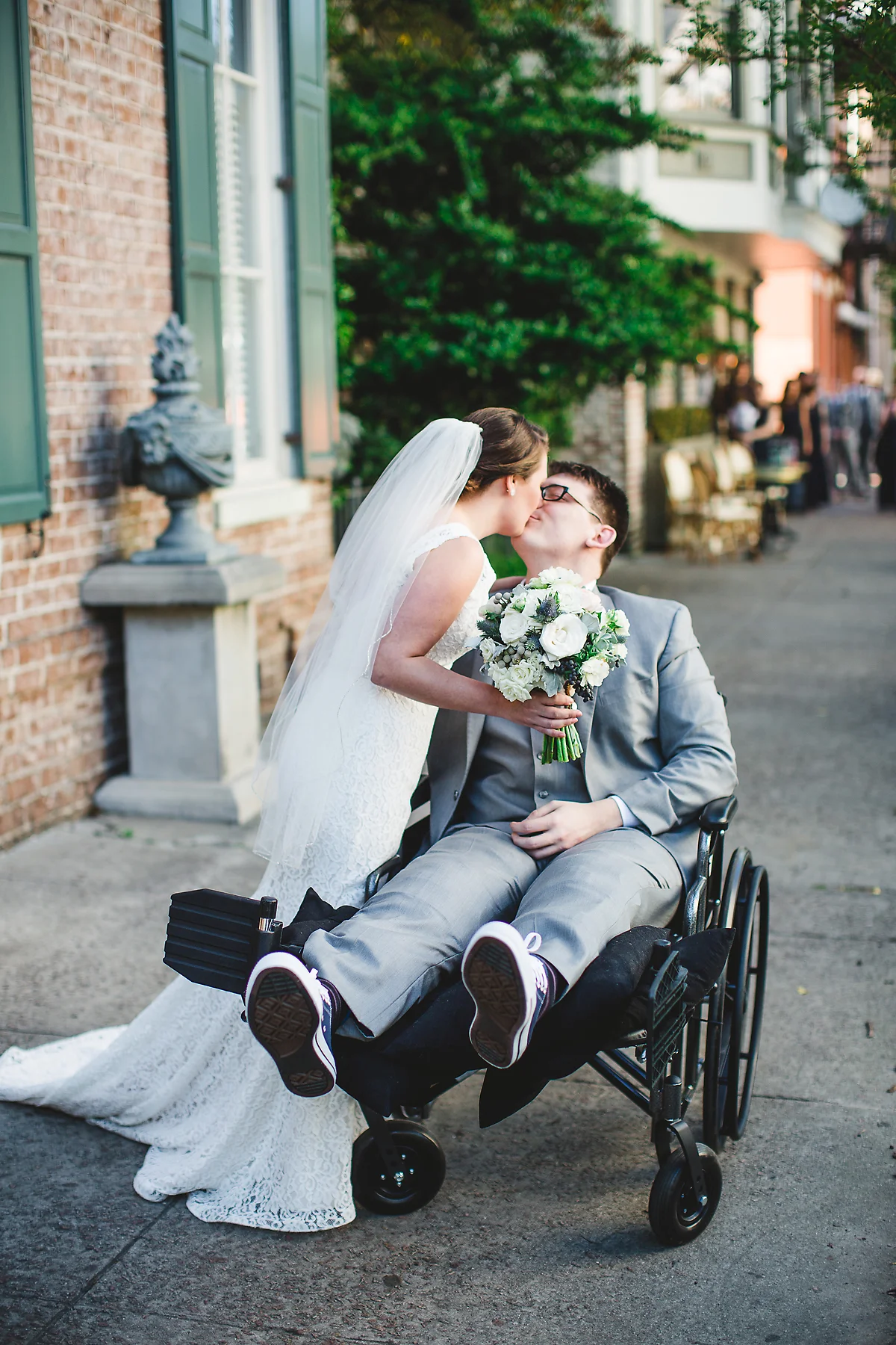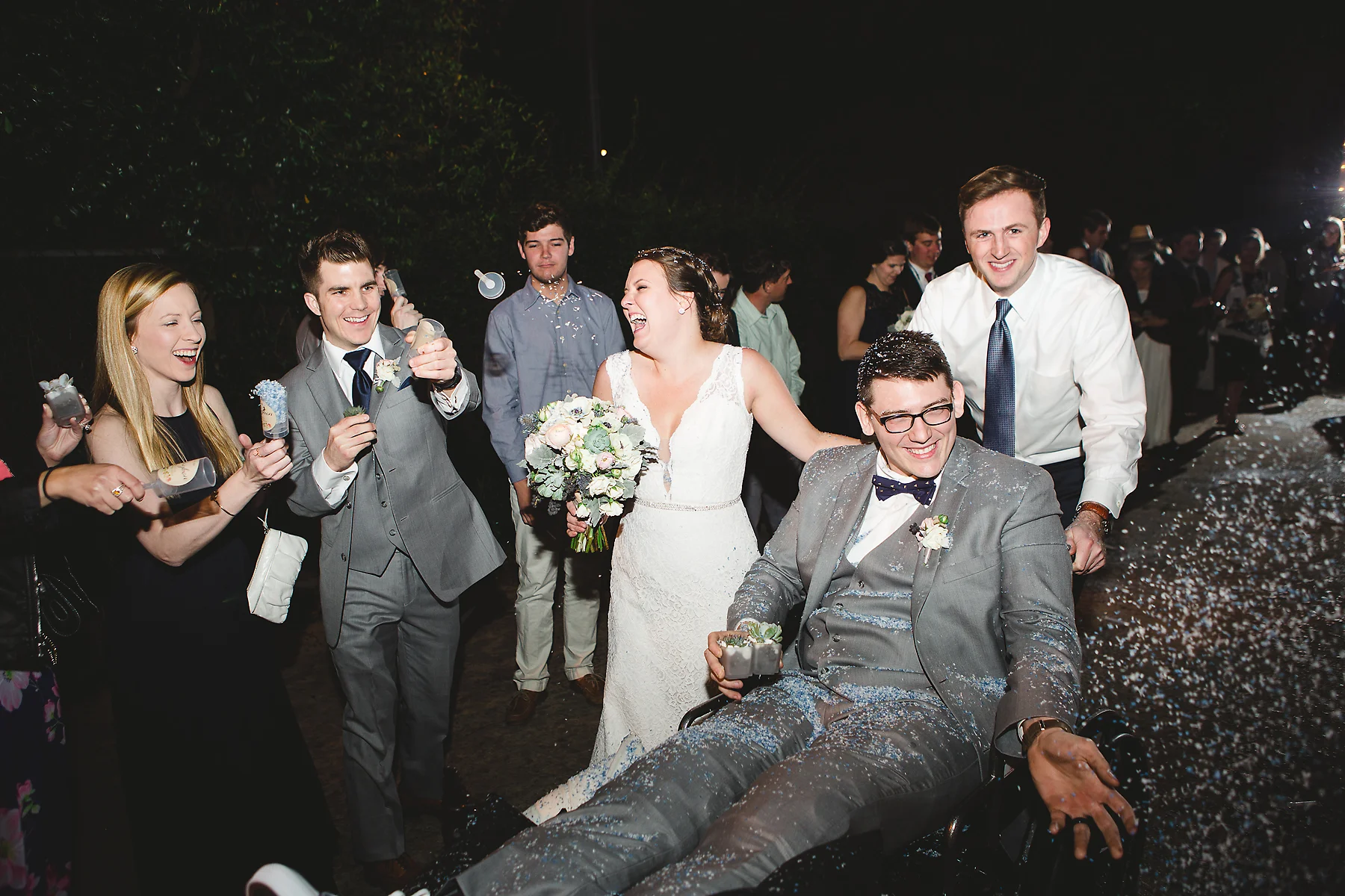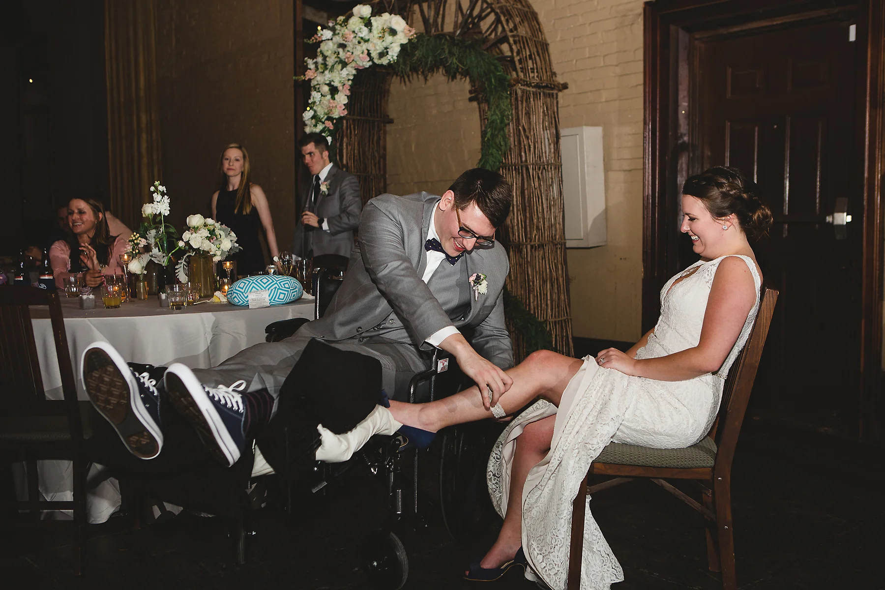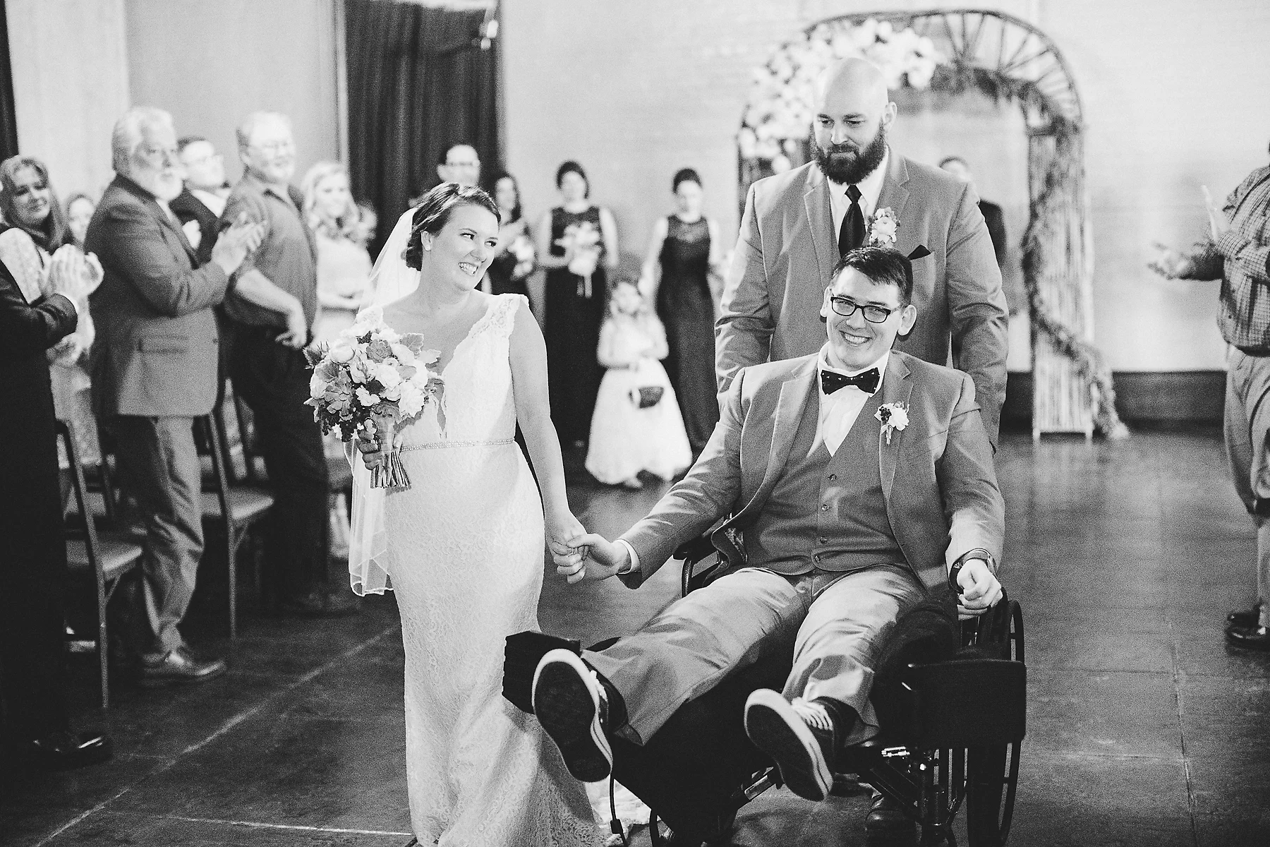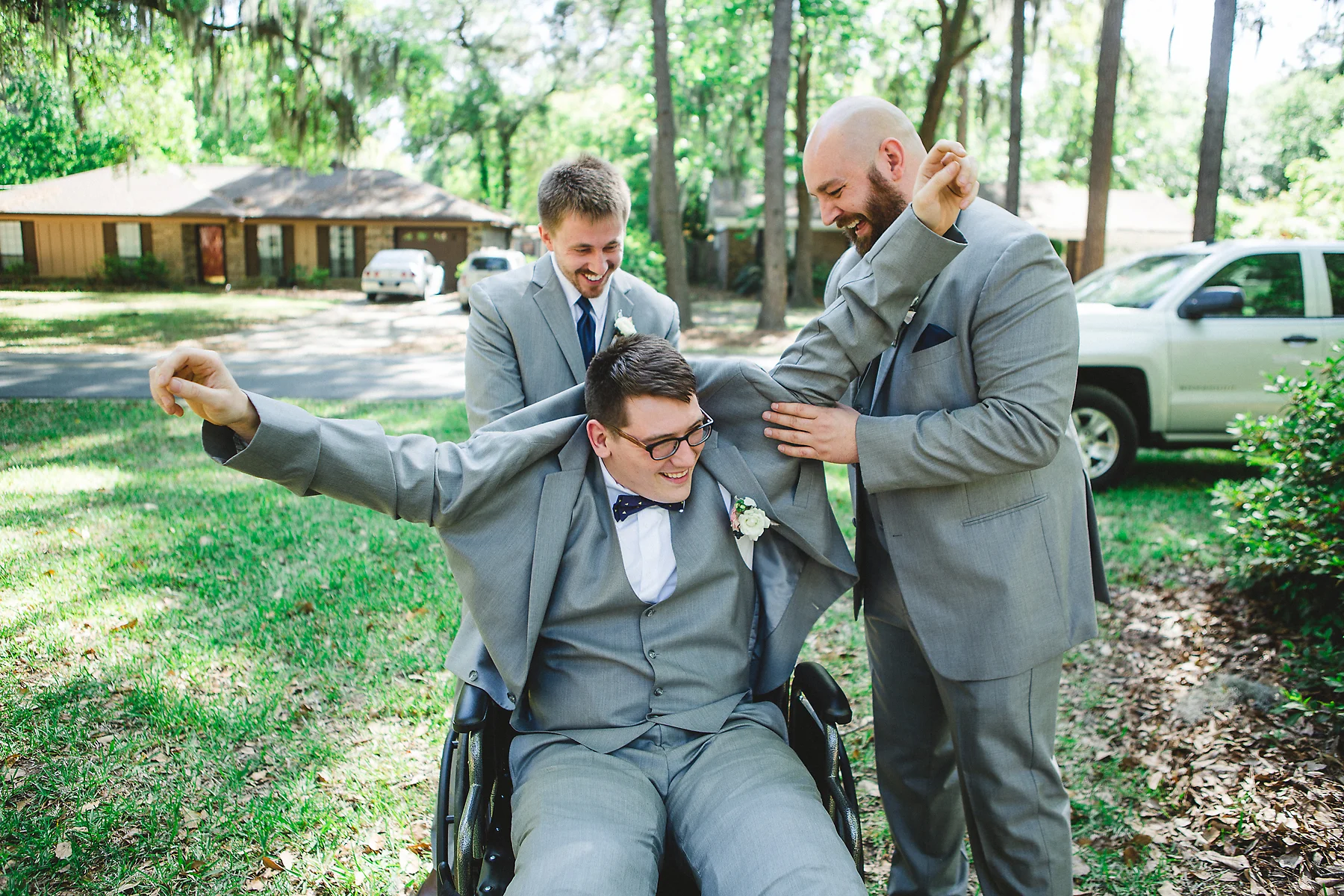 The day began as any other "day before" a wedding day. We spent the morning running around, trying to finish up all last minute details. That afternoon, I was headed to our suite to prepare things for the girls the next day, and Robbie went out with the guys to the trampoline park. This was to be the last time we'd see each other before the wedding day. I joked, "don't break an arm!" A few hours later, I get a call from Robbie that something had gone wrong. I rushed to the ER to find the doctor telling him that he had torn both of his patellar tendons in a freak accident and that he had to have emergency surgery. We were both scared, but knew the show must go on. As Robbie was recovering from his surgery, I went to our rehearsal and spread the news. Minus rescheduling the honeymoon, things continued as planned, with the addition of the groom's wheelchair.