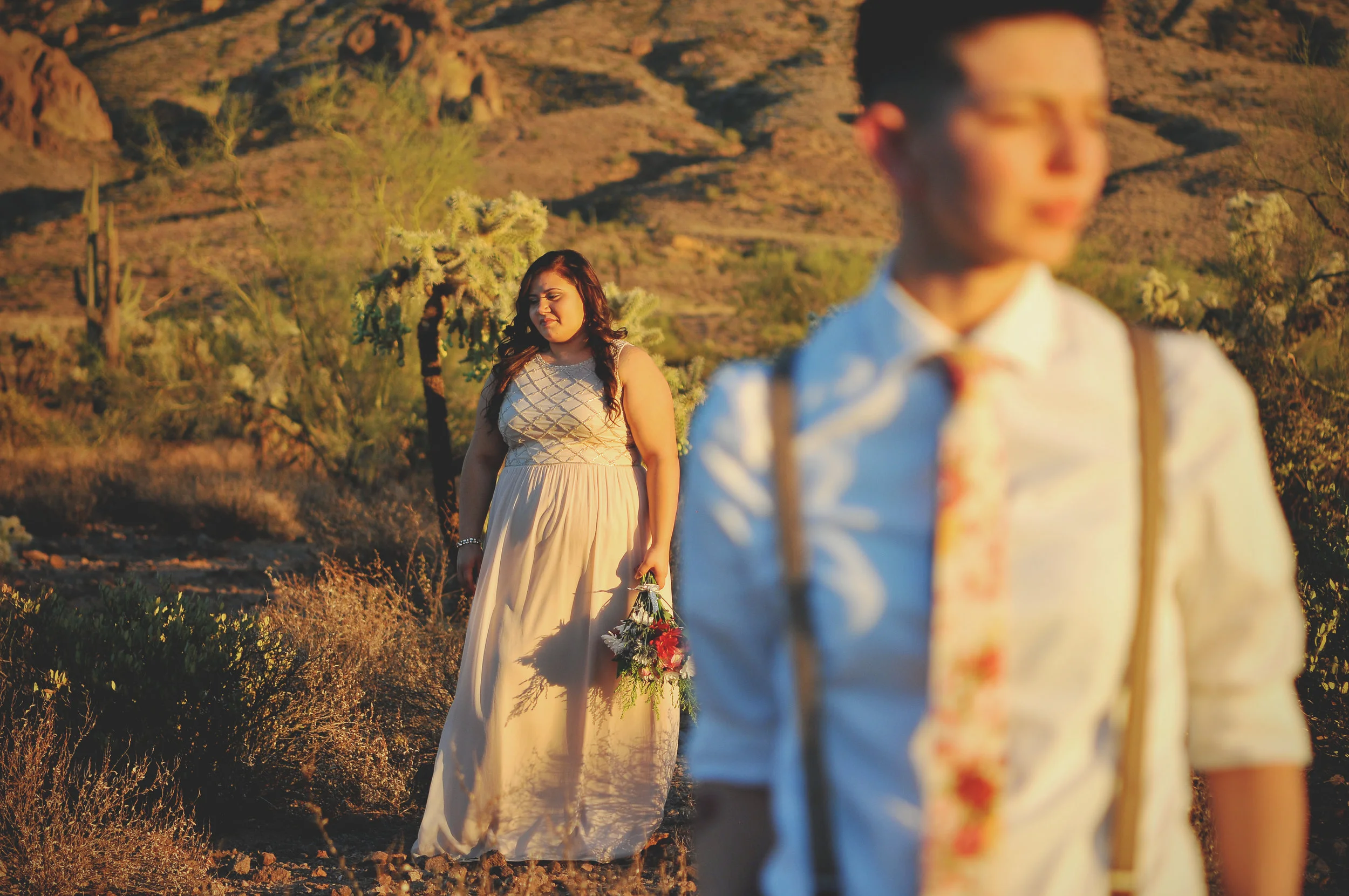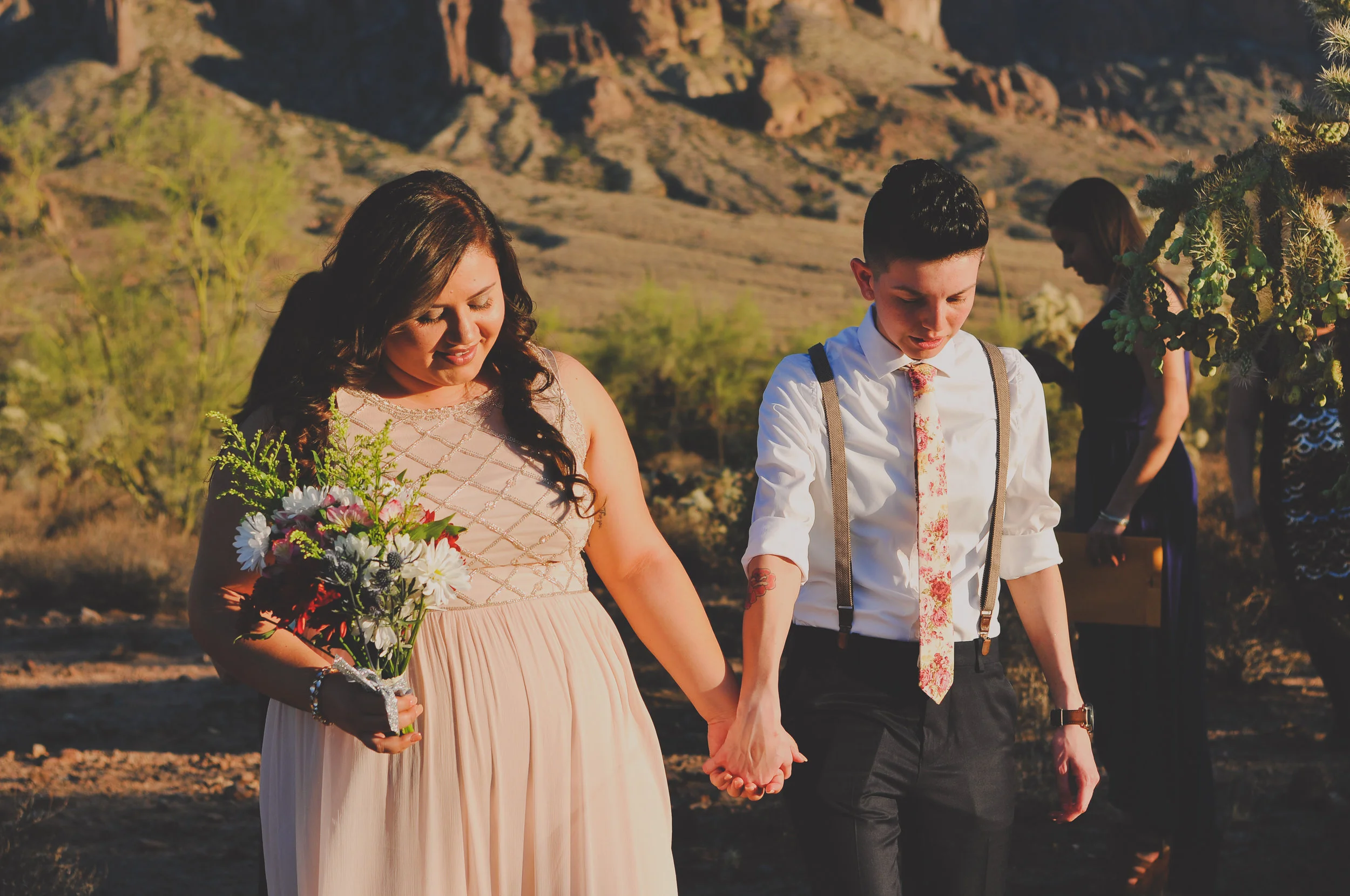 /Jess and I met at Arizona State University when we were 18 years old and freshly out of the closet to our very religious families. We started dating in 2011, without acceptance or support from our families. My sisters were the only supportive ones from my family. We lived at the dorms for a semester because we had no where to go. We moved into our first apartment when the semester ended and slept on the floor for months. We didn't have anything but a few blankets, pillows, clothes, and towels. We saved the first nine months together to buy our first couch and continued saving for other basic things. Five years later, on our 5th year anniversary (10/26/16), we tied the knot! Our parents aren't fully on board, but Jess's are a little more supportive. I'm still struggling with my parents. We have been through very rough lows and some good highs, we have grown stronger together, and been there for each other when it's most needed.