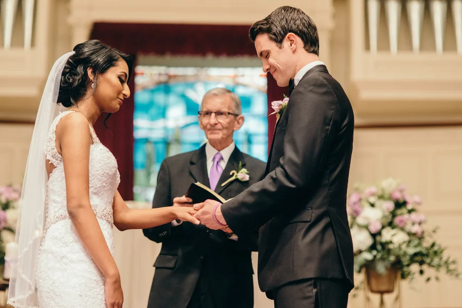 The ceremony took place at First Baptist Church in Galveston, the church that Jessica attended while growing up. Some of Jessica's extended family flew in from India to watch them tie the knot. Her pastor, who had seen her grow in her faith over the years, gave the sermon and blessed their marriage.