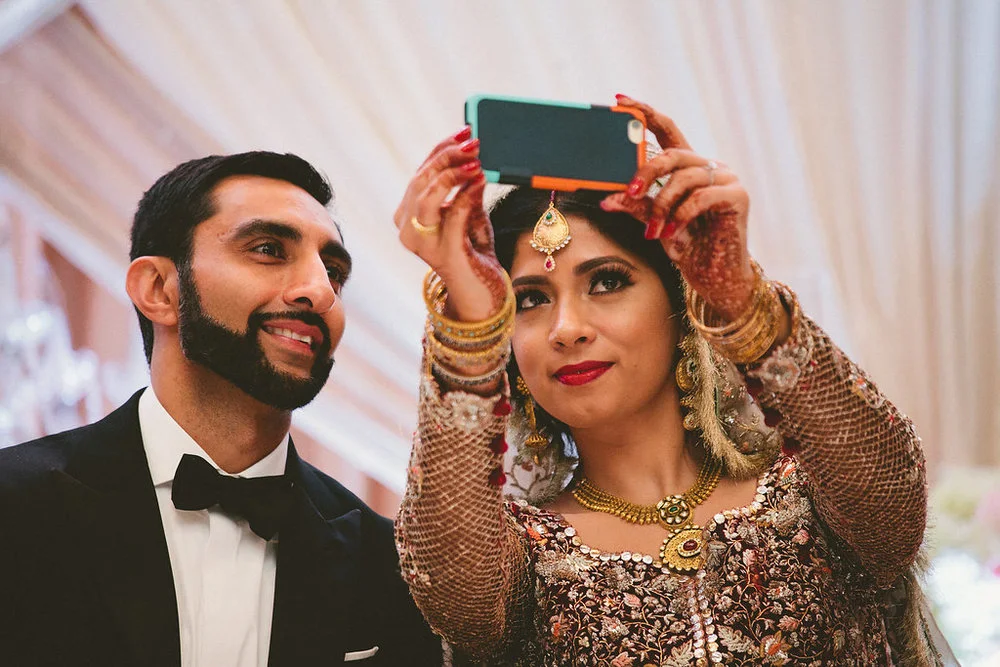 This couple had a very traditional two-day celebration filled with modern elements, so much color, and love. On the first day they hosted the Mehndi Ceremony and Nikah Ceremony. The Mehndi Ceremony is when the bride gets her hands and feet painted in henna. The patterns are completed with intricate details, and she sports them for the rest of the ceremonies. The Nikah Ceremony is the traditional signing of the marriage contract. The couple repeats the word qabul,which means "I accept" in Arabic three times to demonstrate they are freely marrying each other. The Shaadi Ceremony is the actual wedding day. They held a huge reception and at the end of the night performed the traditional giving away of the bride. The bride's family walks them to their get away car and reflects on the joining of their new families.