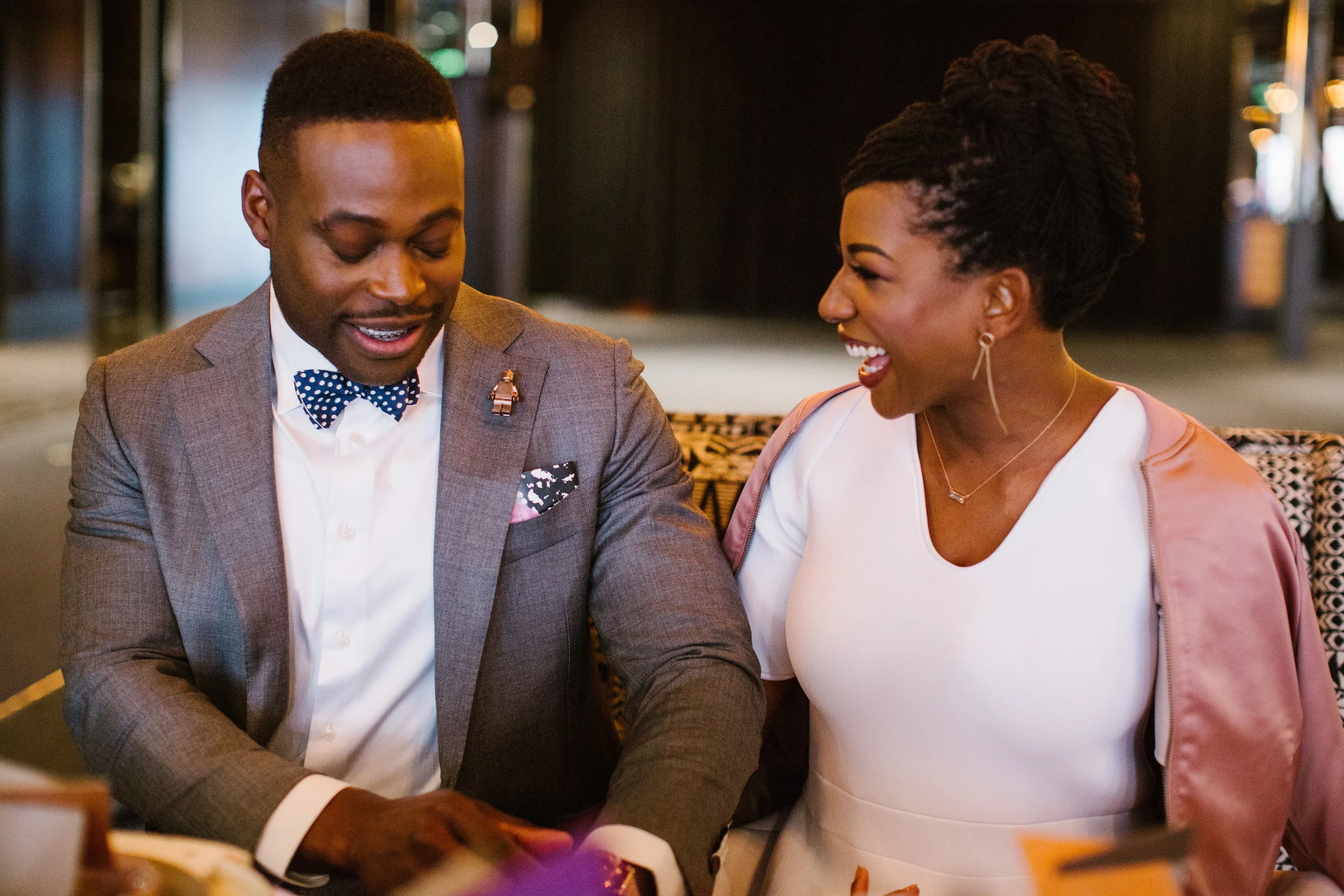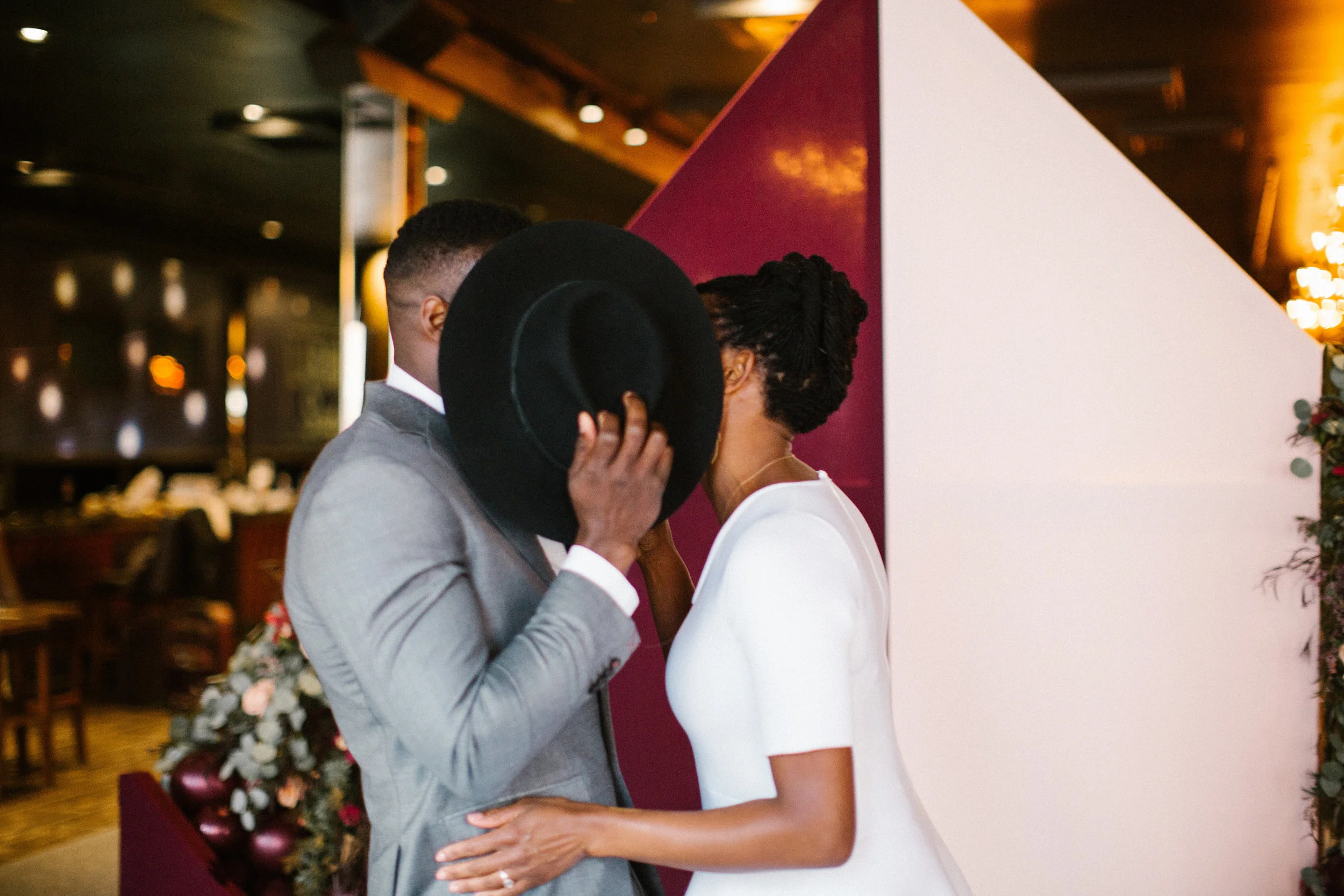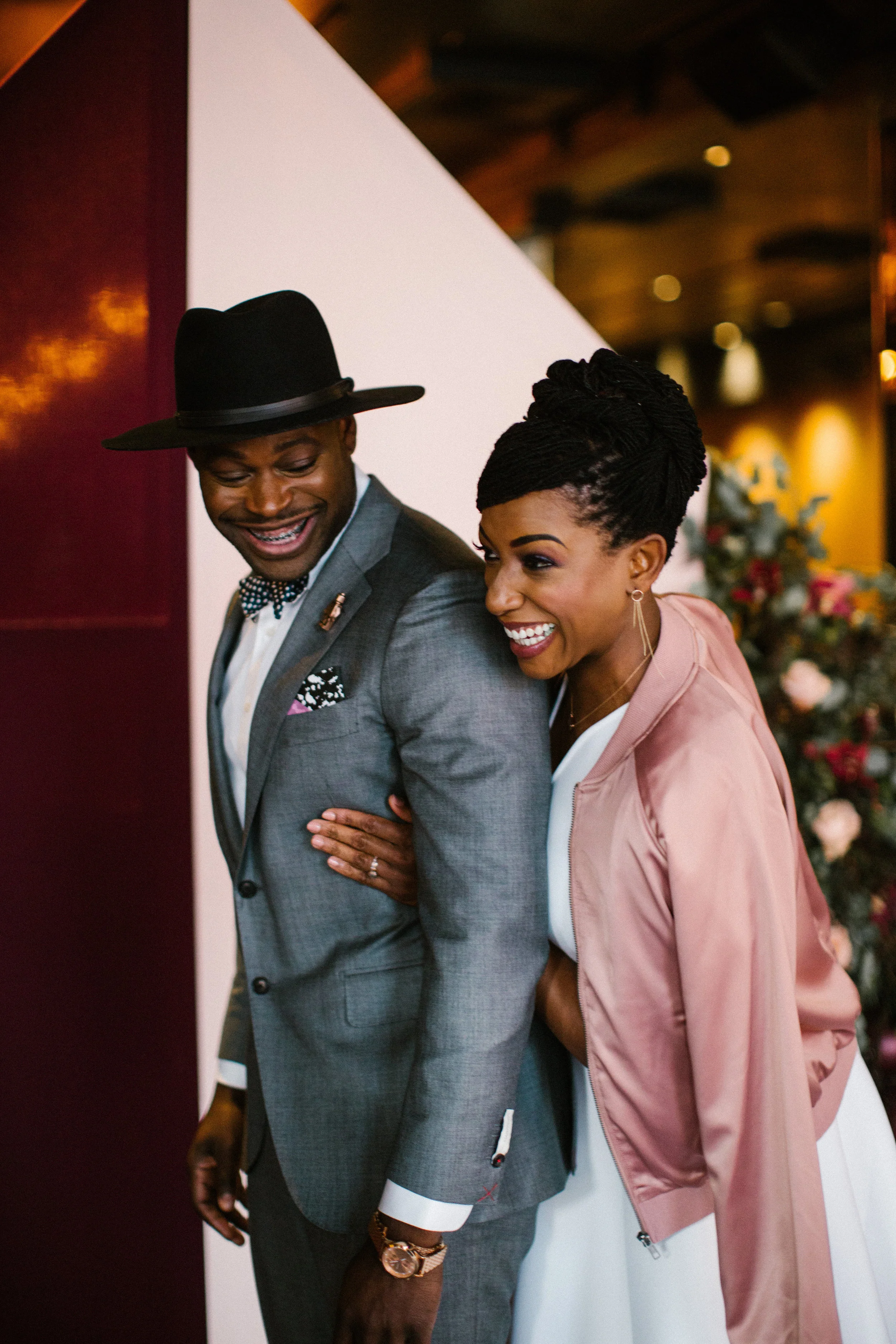 This styled shoot was a sophisticated rendition of the 80s. We wanted to balance the lightheartedness of love with the moody space of the venue to create an intriguing connection between everything. Our goal was to extract bigger elements of the decade and integrate that with architectural hard lines and edges. Everyone who worked on the shoot was a local Colorado business, and we were so proud to shine light on the diverse talent present in the Denver area.