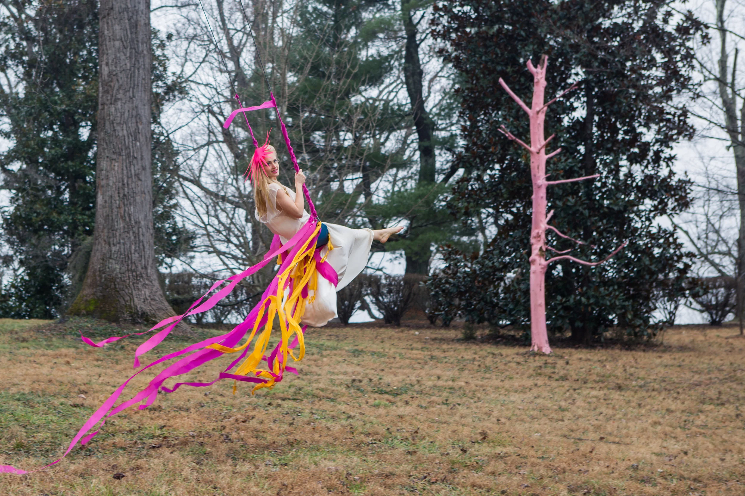 Play. The idea of play is a form of connection, to each other and to their surroundings. We kept saying that in their world it would rain confetti. The wedding bouquet was edible. Hot pink and bold shapes. Swings, bubbles, ribbons, a hot pink bamboo altar, laughs, confetti frozen into ice, play. Anywhere you go in the world the happiest people you see are often the ones that know how to play, whatever that looks like to each person. It was fun. It was also fun to gather a group of dynamic, female, artists in the area to create together for the first time.