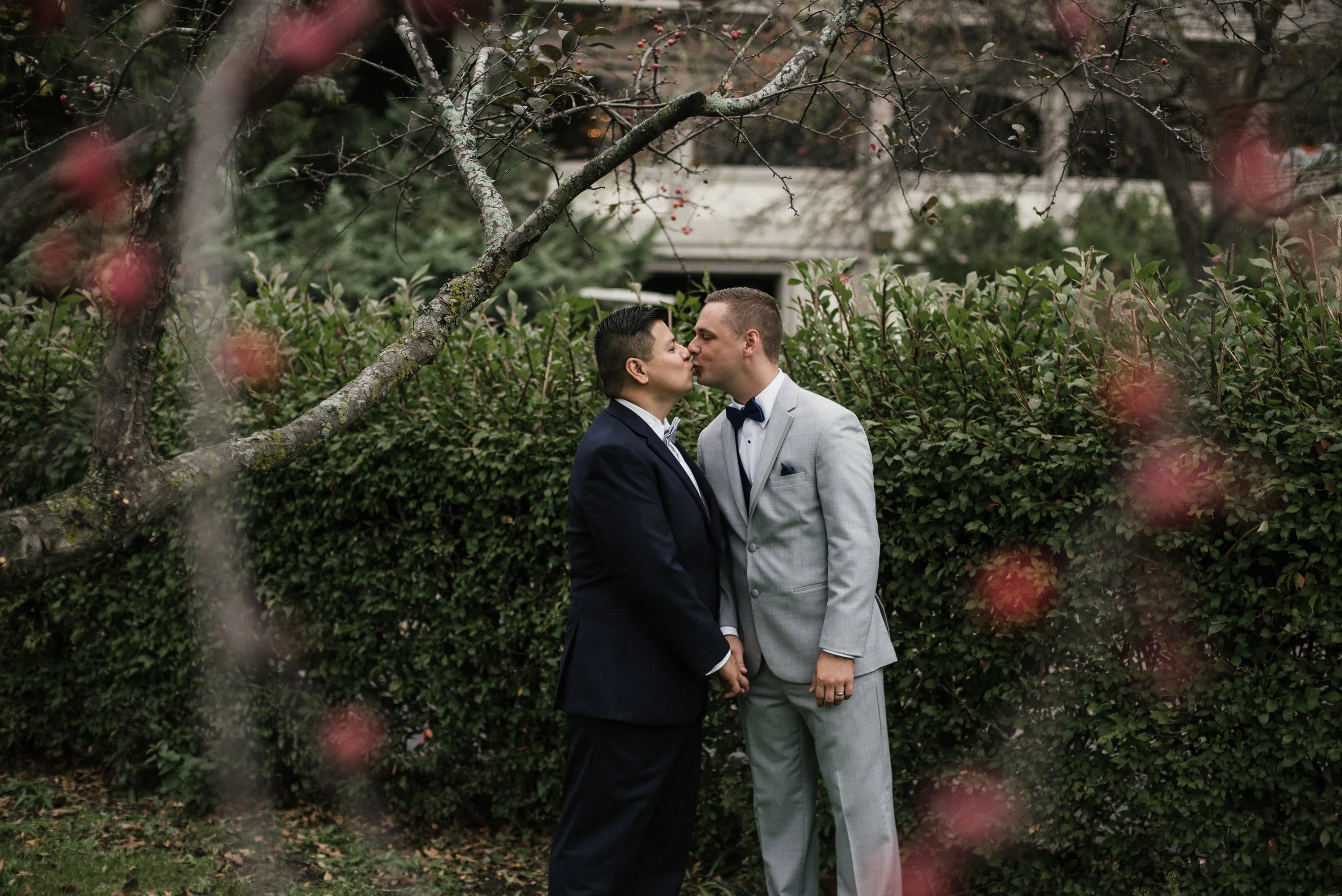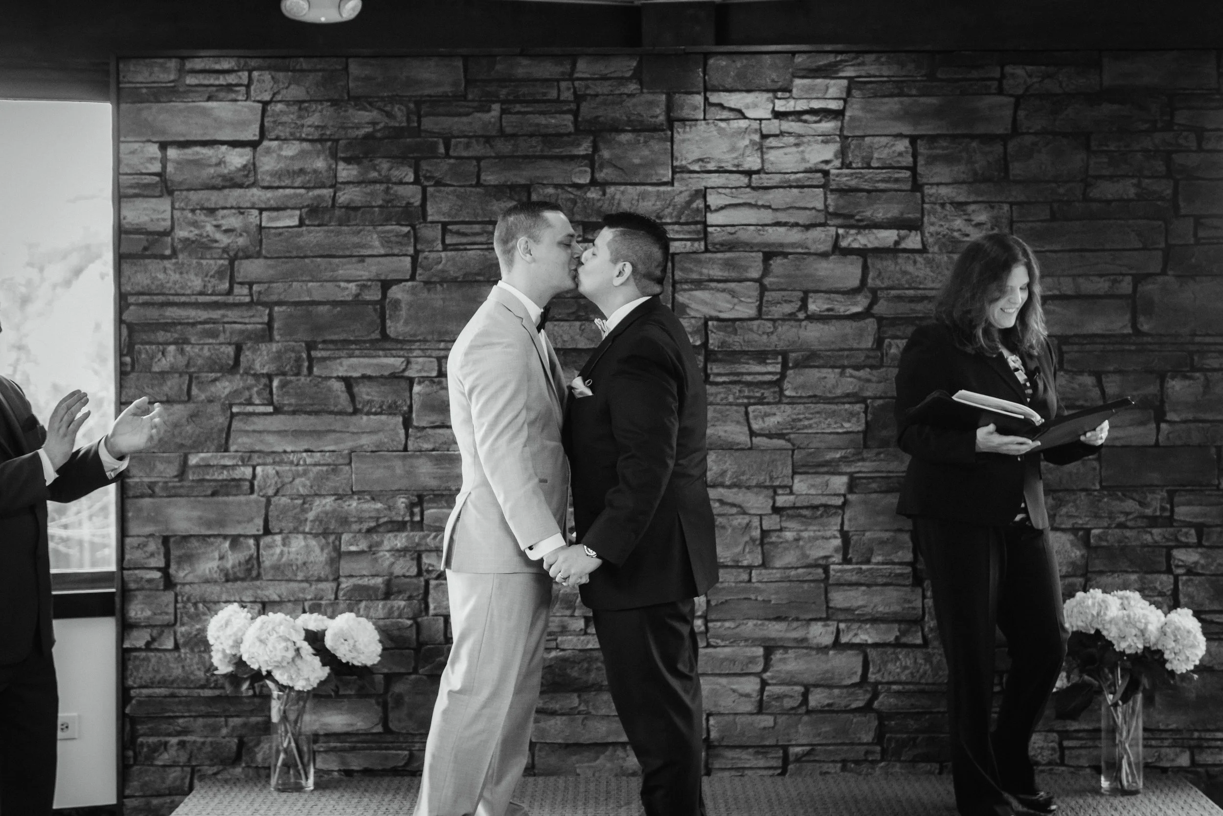 I’m going to be honest for a second. As a photographer, while I always feel a connection with my couples, I don’t feel every story and couple equally. It is safe to say I got a little extra emotional at Nick and Luis's wedding. Starting during the ceremony I became aware of a different depth to the day. Luis was looking at Nick, and his eyes said it all: love and gratitude. Luis was living out his perfect day with the person who met his gaze and matched it. Nick looked back at Luis with such obvious affection and love that it was impossible to miss. Everyone there was caught up in it. People leaned forward in their chairs, wanting to catch every word that was shared. It was so clear that Nick and Luis had found a safe place in each other, and it is beautiful.