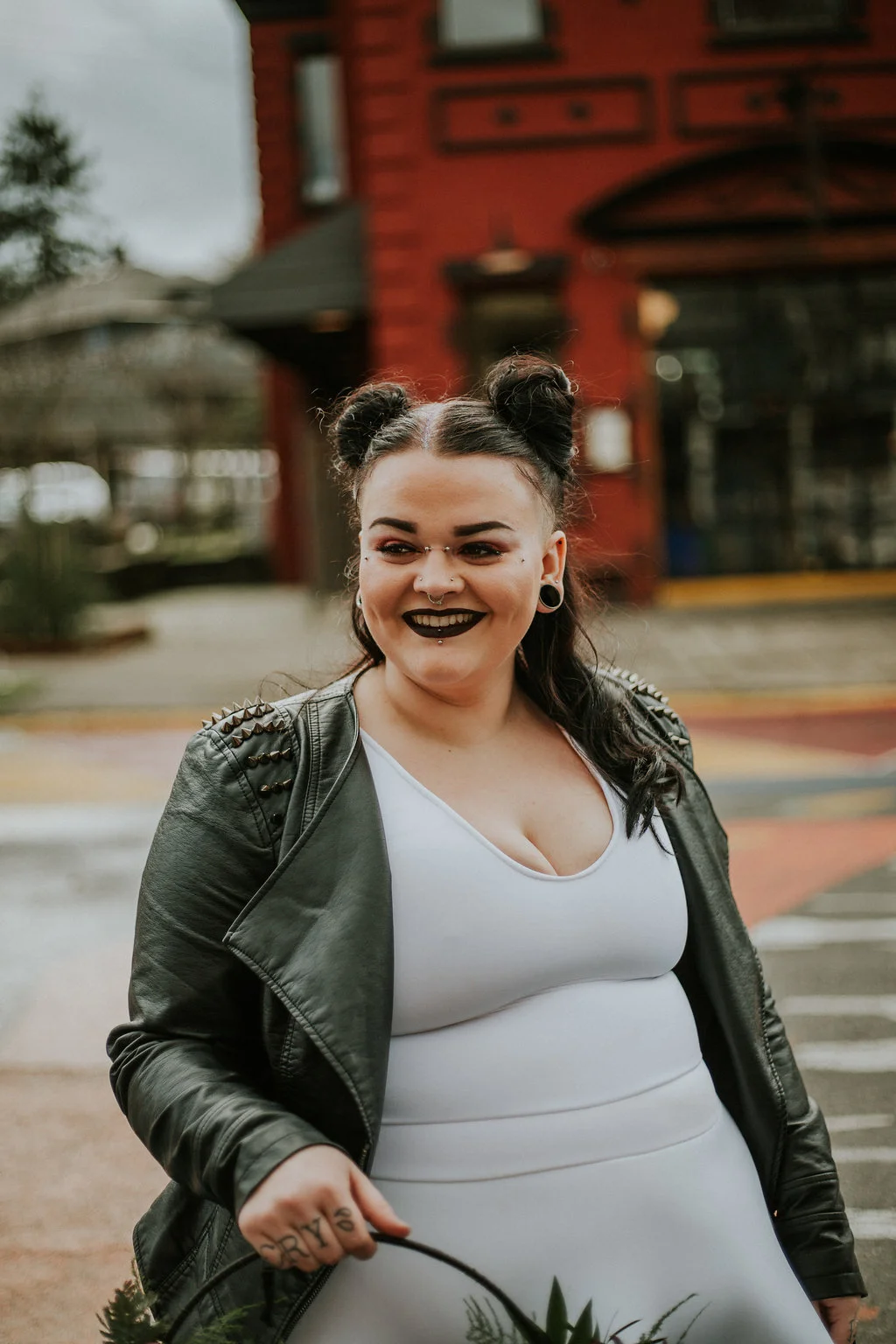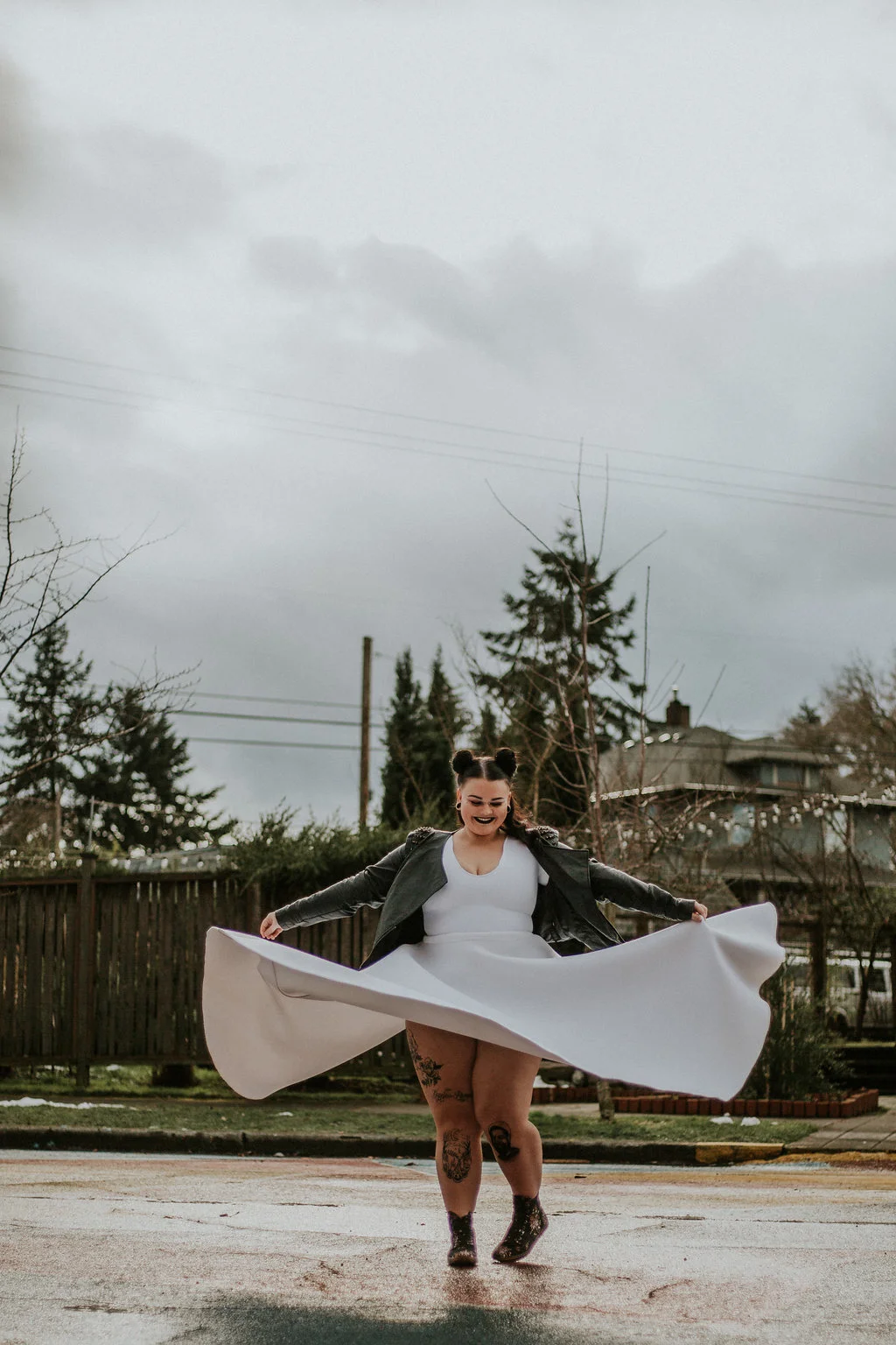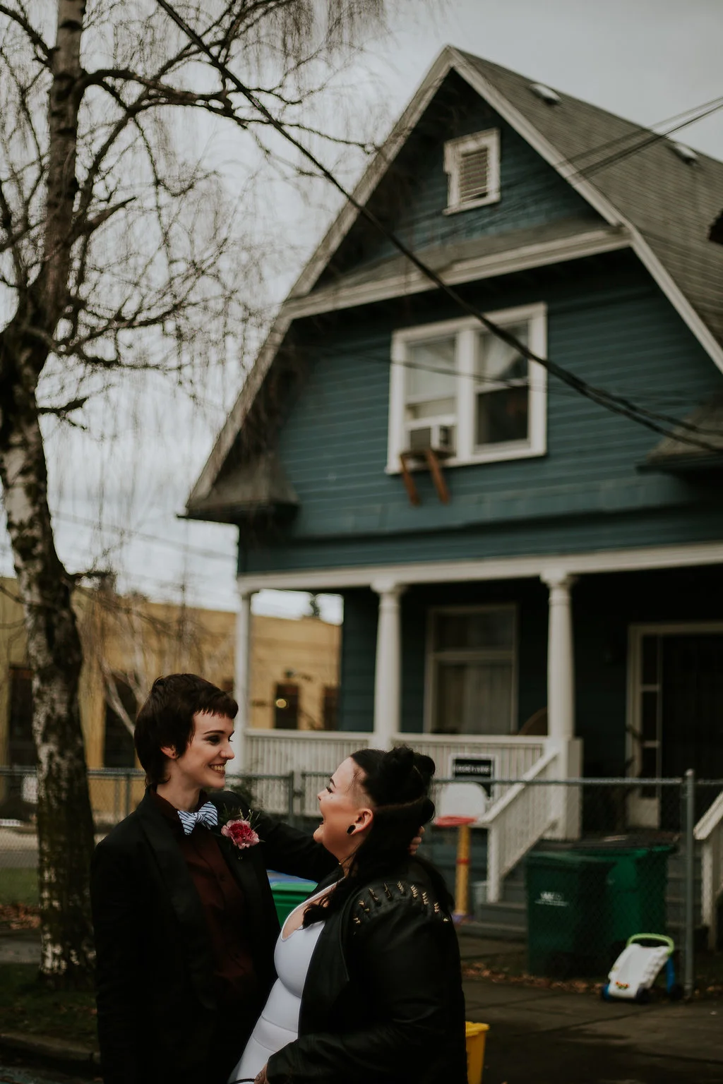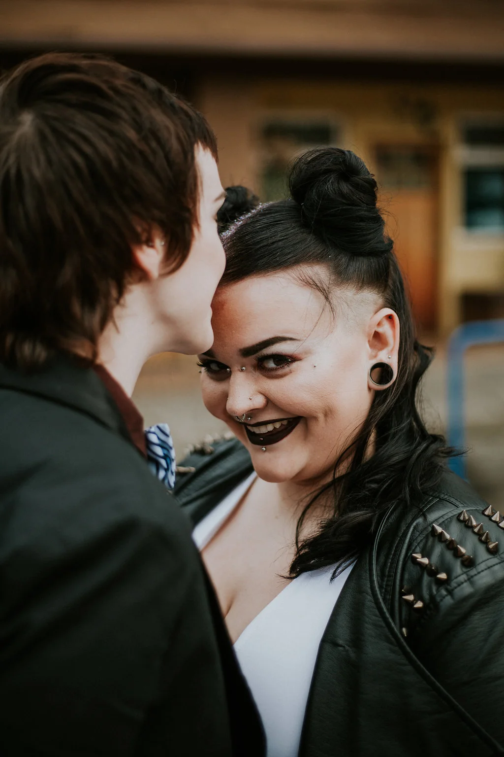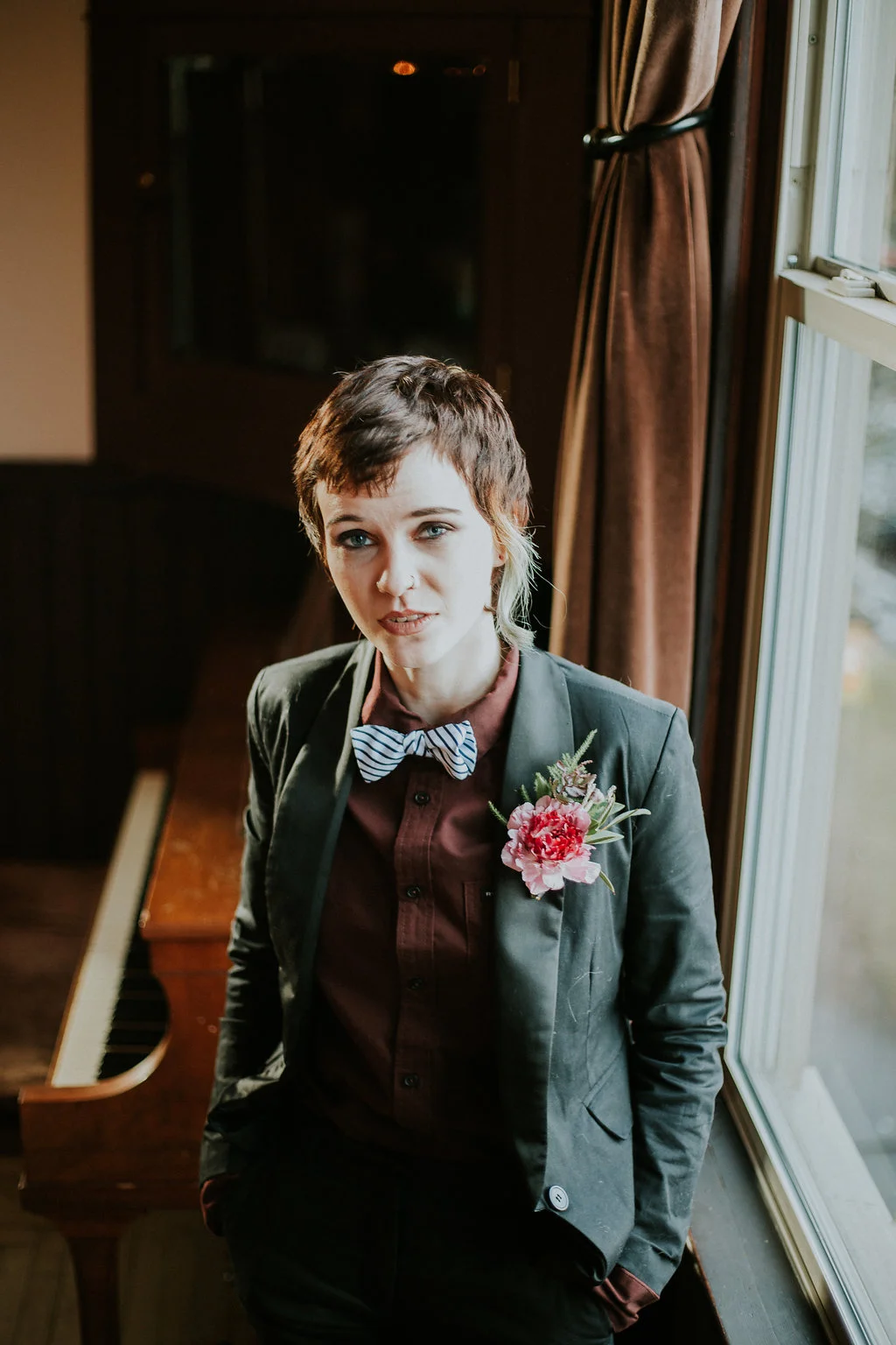 Each of our team members is passionate about representing every type of body and every type of love in our visual media. Our models are both tattooed chicks with alternative vibes. One of our lady models is a curvy model with a bangin’ booty, and the other rocks a pixie cut and an incredible chest piece. There are not nearly enough incredible lesbian wedding shoots in the blogosphere—or even on each of our websites. We loved creating relevant visual content that is exciting and fresh for our LGBTQ clients.