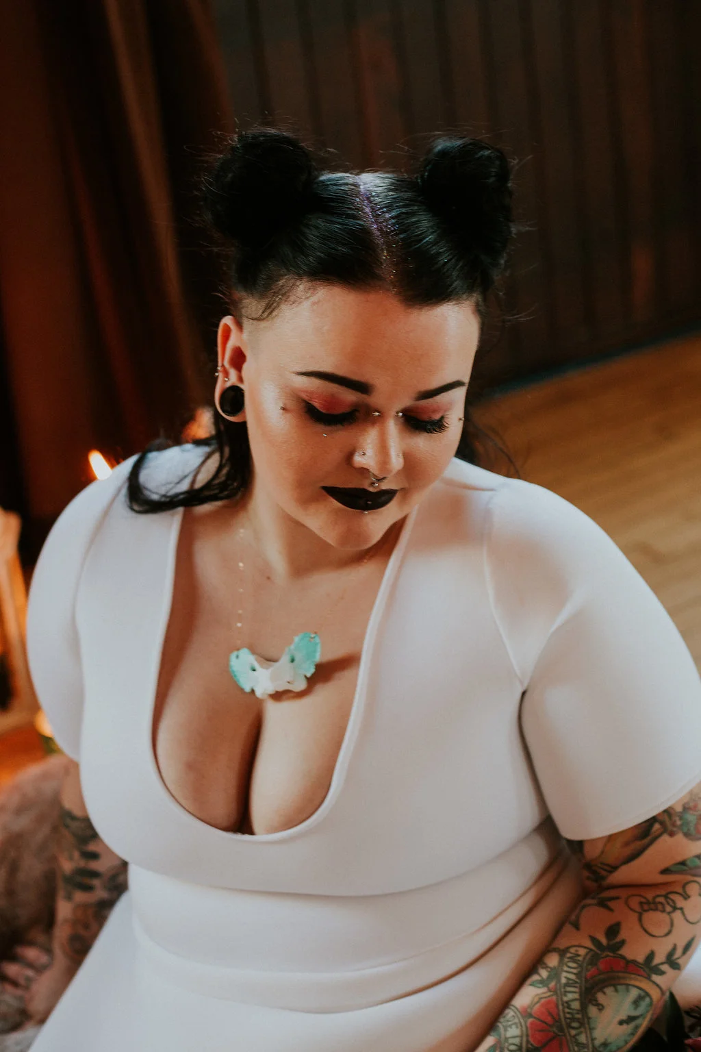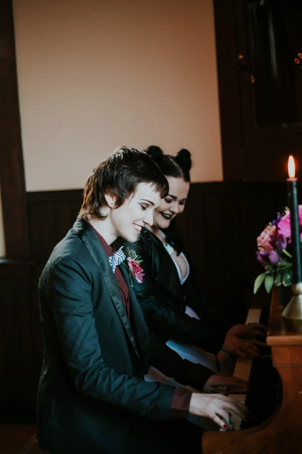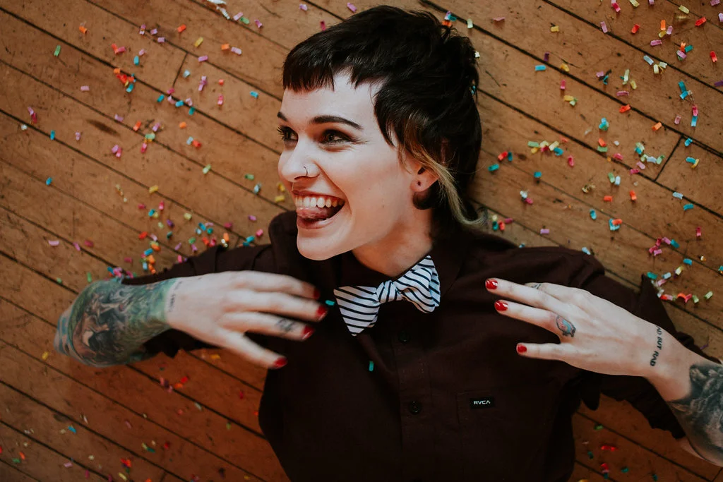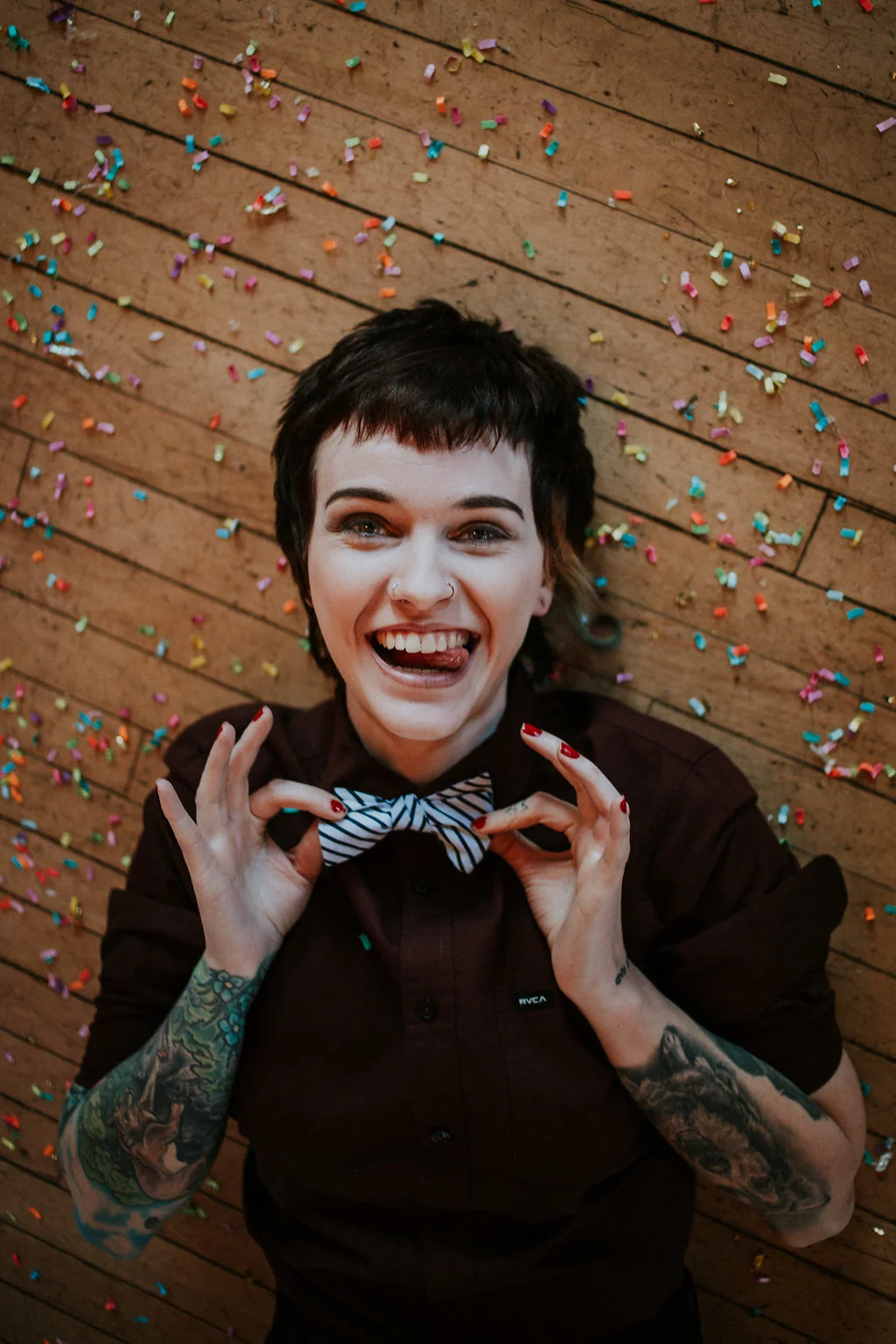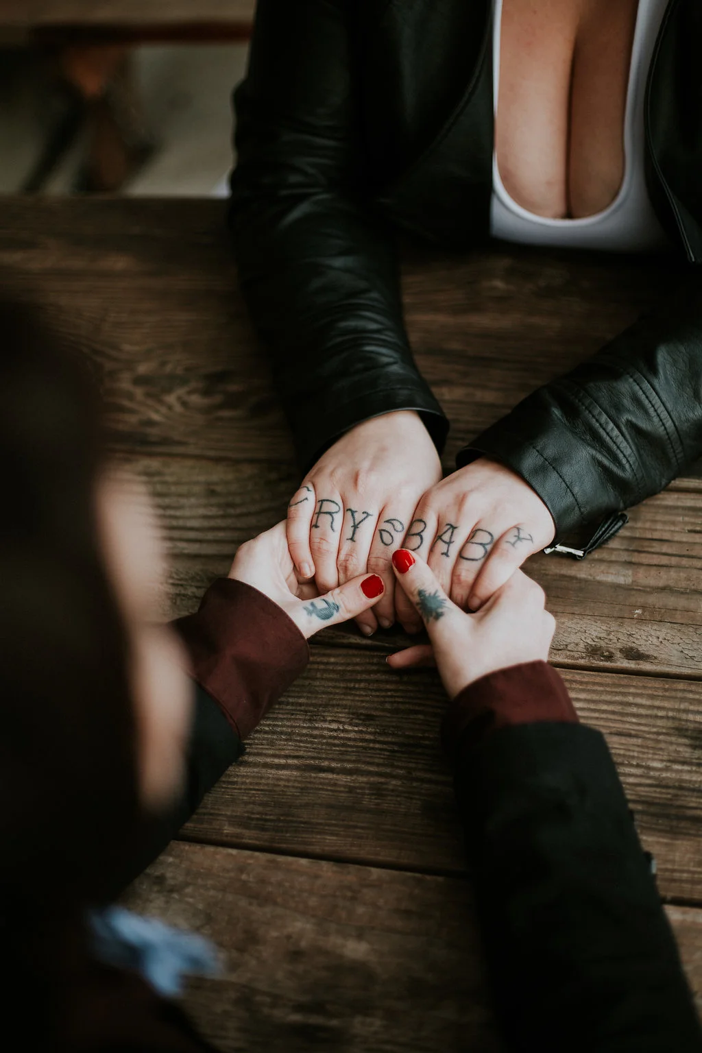 Each of our team members is passionate about representing every type of body and every type of love in our visual media. Our models are both tattooed chicks with alternative vibes. One of our lady models is a curvy model with a bangin’ booty, and the other rocks a pixie cut and an incredible chest piece. There are not nearly enough incredible lesbian wedding shoots in the blogosphere—or even on each of our websites. We loved creating relevant visual content that is exciting and fresh for our LGBTQ clients.