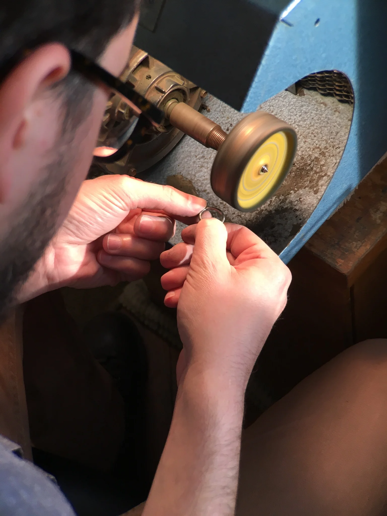 Once we were finally done sanding our rings into their proper shapes, we got to make them all shiny with the buffing machine. Now things were really looking professional!
