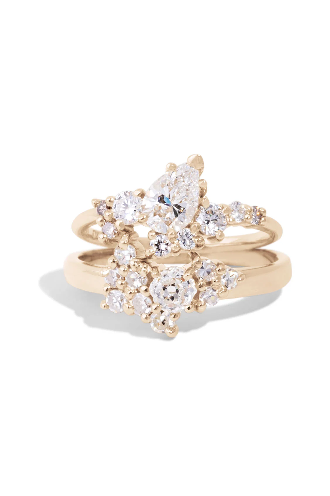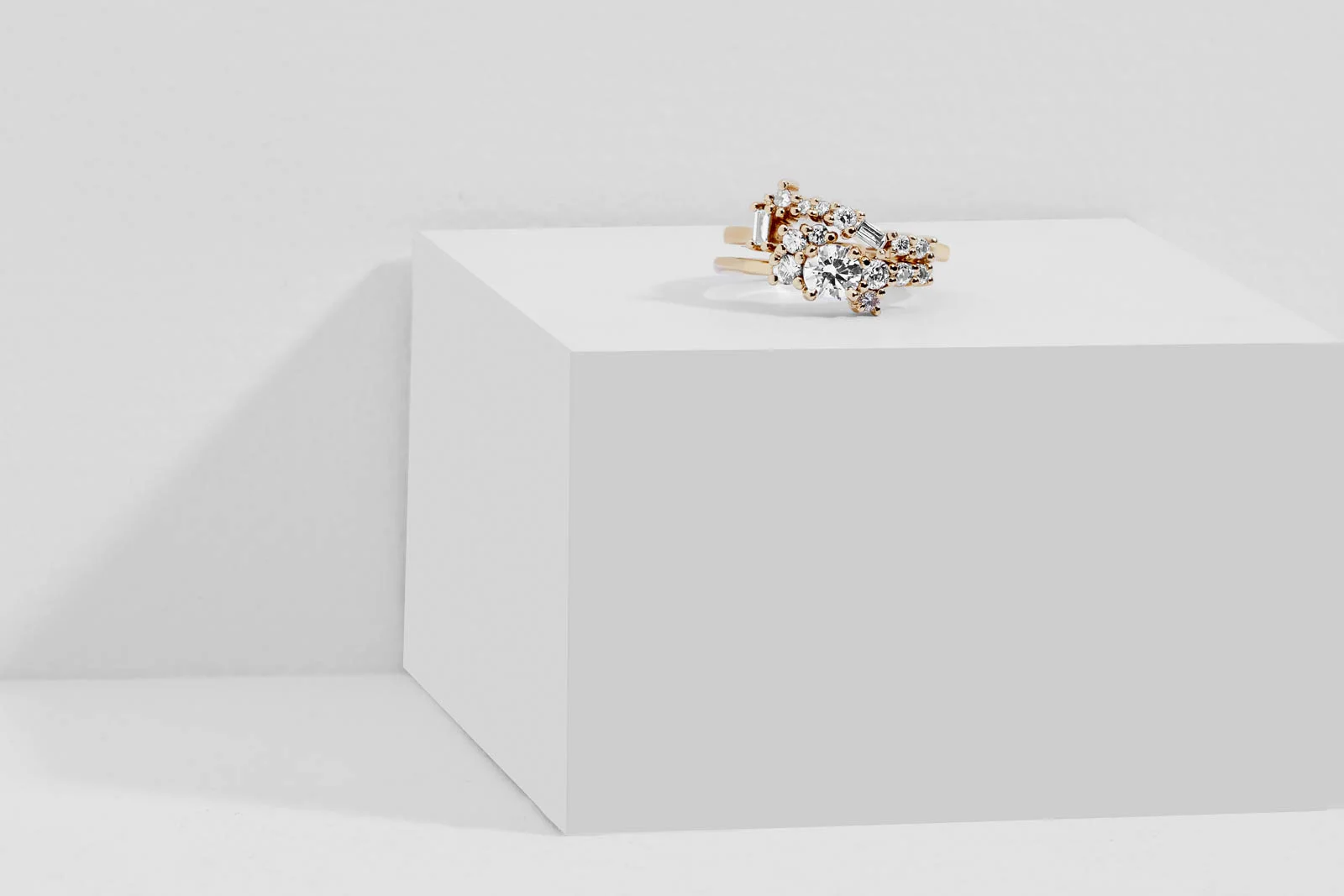 At Bario Neal we offer an array of ethically sourced diamond options, and every size and cut matters. Shown above, the diamond cluster rings and band featuring our uniquely traceable, ethical baguette cut diamonds.