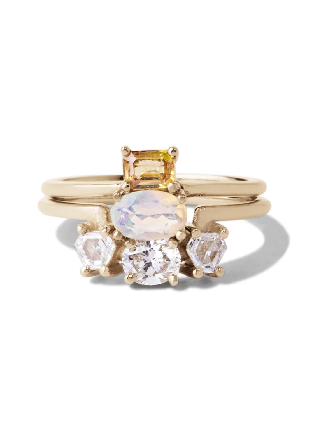 Modern couples can create new traditions with their choice of partners, food, venue, and yes, even their jewelry. Colored gemstones are a great way to express your personality and avoid the diamond conversation altogether. Plus, there are just so many amazing gems out there in the world, it’s fun to choose an array of colors, shapes, sizes—and stories! We understand that just like every gem, every community and ecosystem where colored gemstones are sourced is different. We work with established mines and support newly-engaged, responsible miners that are just getting started to ensure that each and every gemstone we source meets our specific and thorough ethical standards. Dabbling in color isn’t just for the gems—you can play with the metal colors each partner sports or venture into the ancient art of glass enamel.