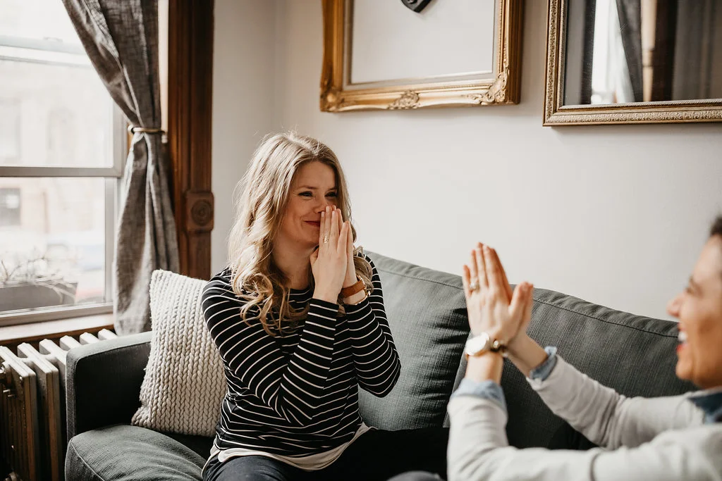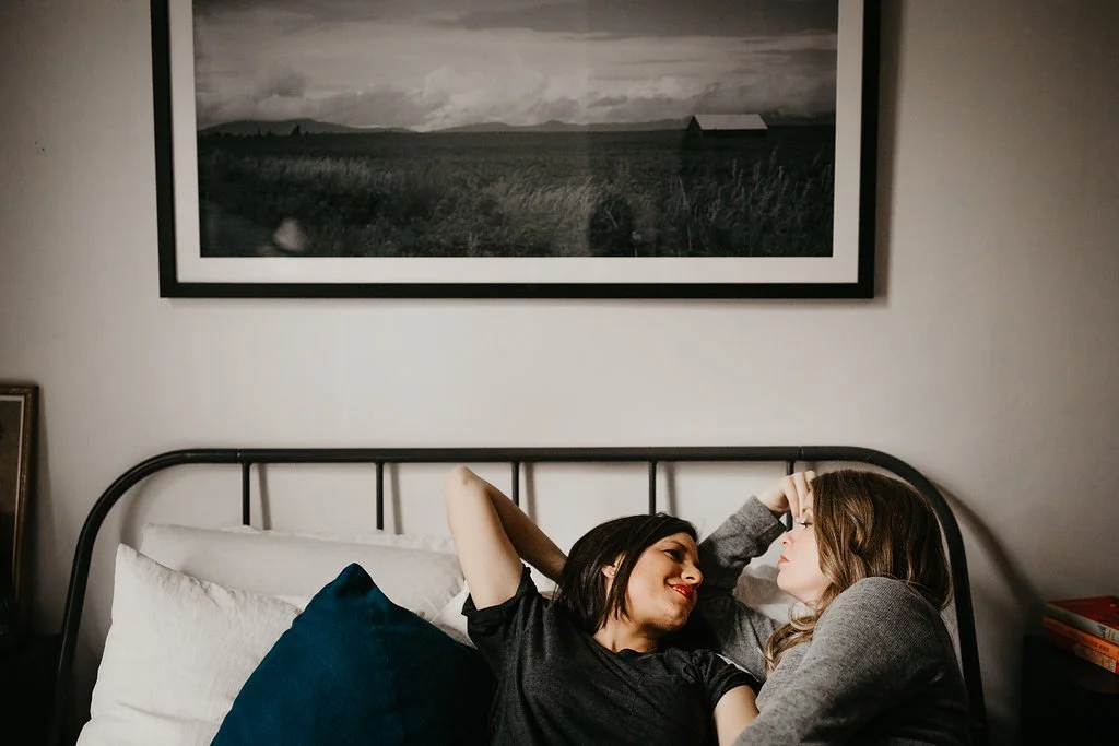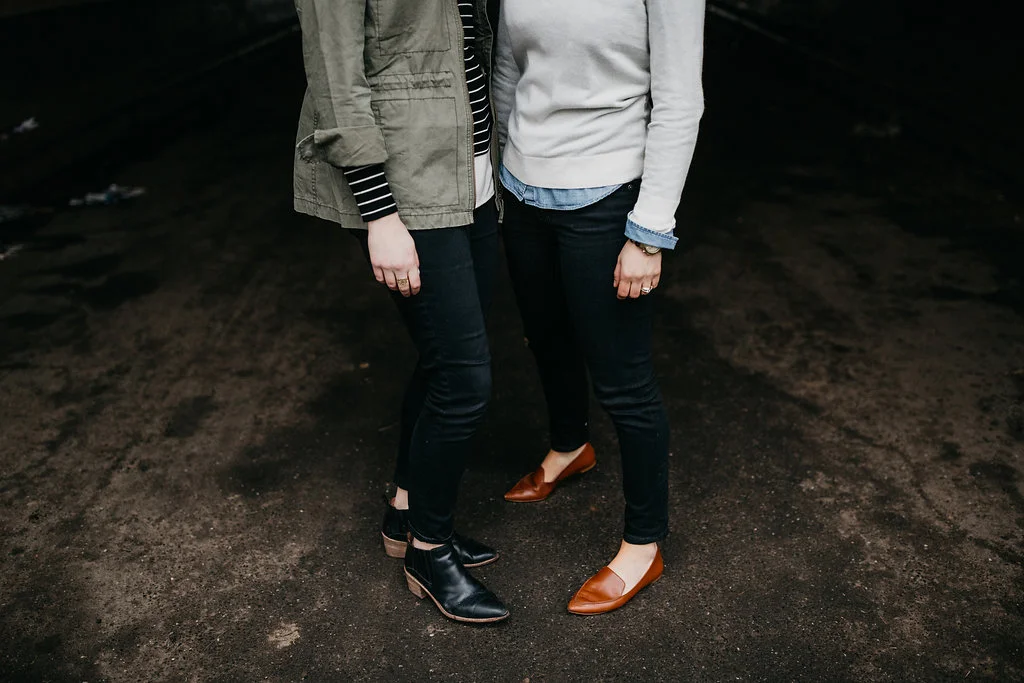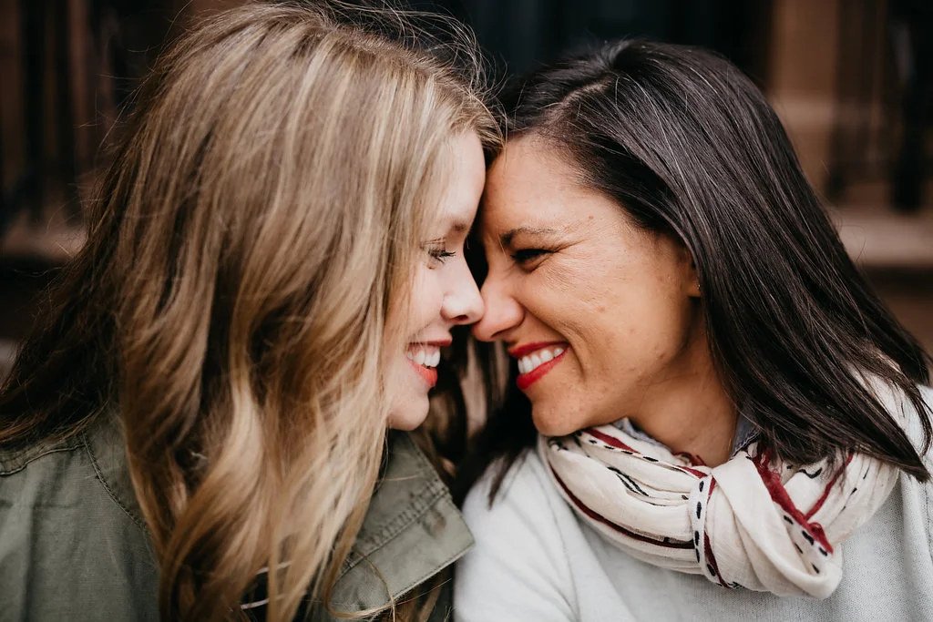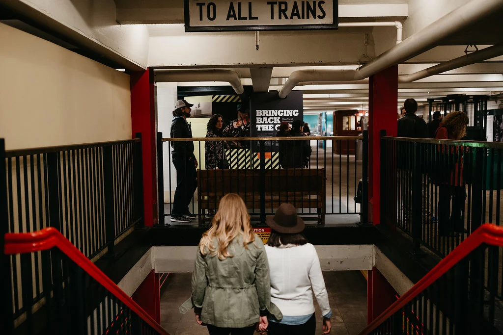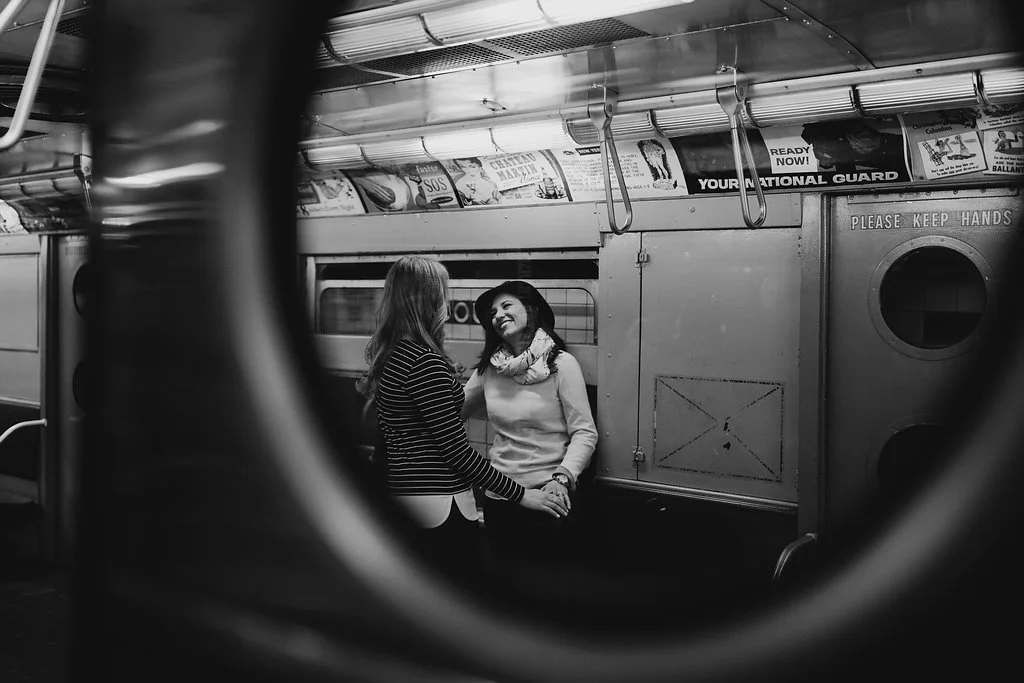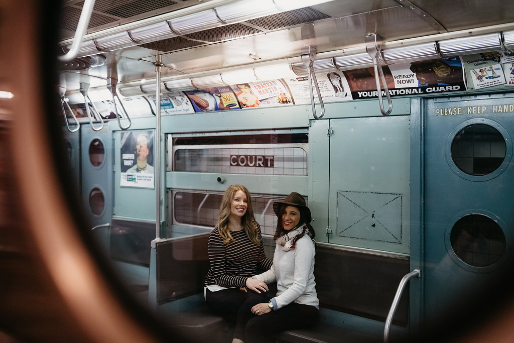 /Leah is a theater director in New York City. Rachel is a history teacher. What better place to get engaged than the set of Hamilton with the assistance of Lin-Manuel Miranda?! Yes, that actually happened. These two are the quintessential New York City couple. For our engagement session, we started at their place in Bedford-Stuyvesant and then headed out to the New York Transit Museum (which is my favorite place in NYC), ending in their old neighborhood of Prospect Heights, where they lived together for years.