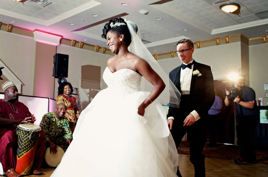 /Julie and Kevin met in Edmonton during high school. Some like to call them high school sweethearts, although they didn't start their relationship until they entered university. It was important to them to host the wedding in their vibrant hometown, surrounded by their community, family, and friends. Julie and Kevin’s vision was to have a traditional wedding (church ceremony, reception, dance party) that had a mix of cultural elements. With Julie's mother from Trinidad and father from Ghana, they were thrilled to include Caribbean dancers and African drummers as part of their celebration.