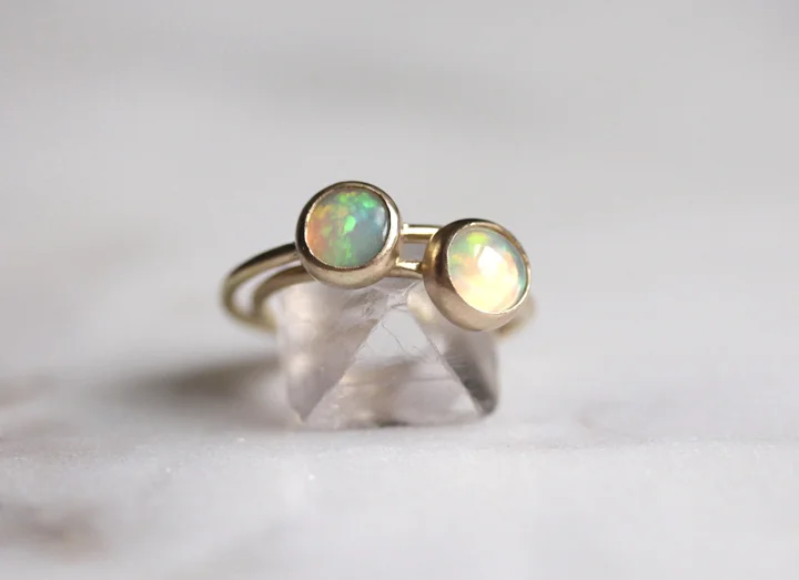 Other times, a client brings the gemstones to Rebecca and they collaborate to create a custom piece together. This set of rings was made with opals the client brought back from a trip to Ethiopia.
