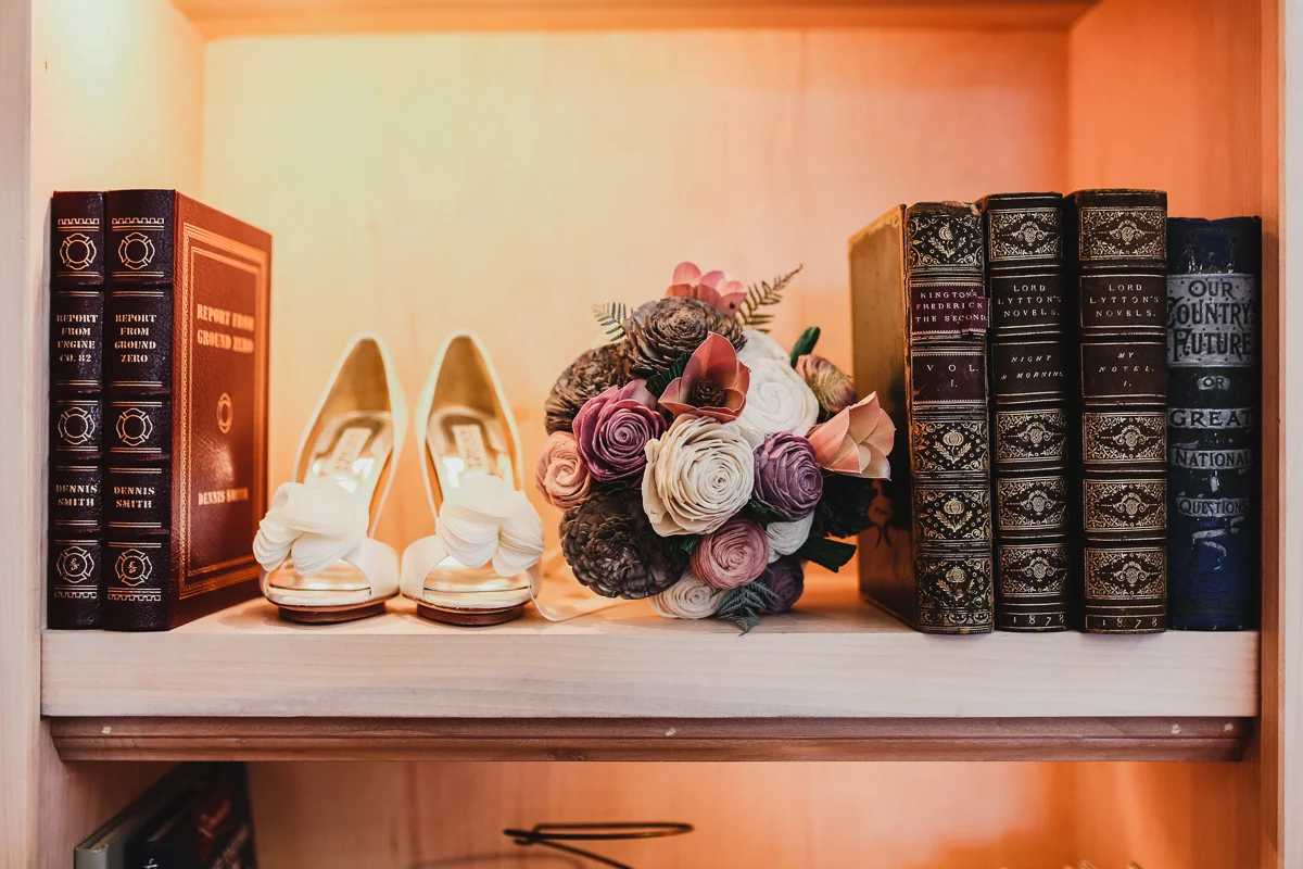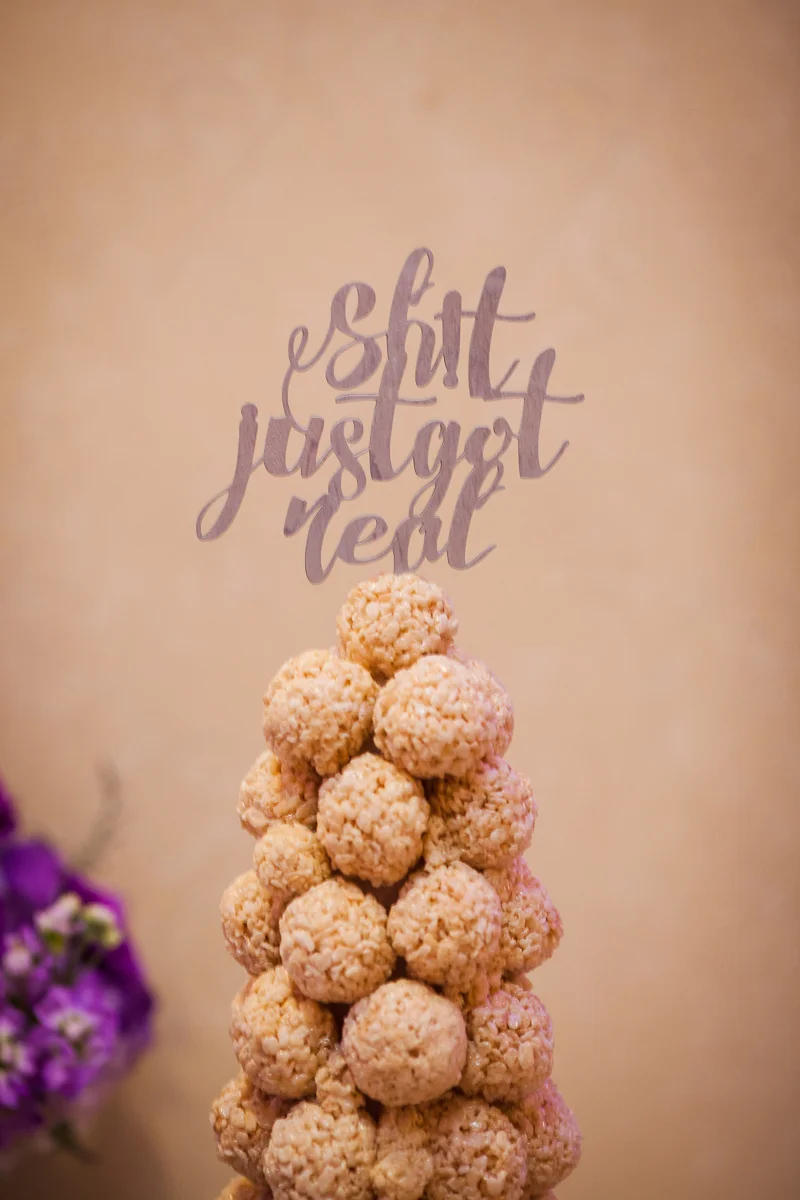 This wedding was really about celebrating with our family and loved ones. I let my mother decide on the flower arrangements (which were beautiful) while I decided to get myself and the bridesmaids EcoFlower bouquets. They are made of wood and can last forever! I wanted a small cake for us to cut and eat, but we also got a Rice Krispy treat tower, apple cider donut holes, and mini-cupcakes for the guests. Our cake toppers also speak to our personalities -- everyone knows we love eating lobster, and one of our toppers says "You're My Lobster," while the other one is a little snarkier with "Shit Just Got Real." And then of course, the music. We hired a great DJ that pulled off our eclectic mix of music (Grateful Dead with Childish Gambino) with pop hits and party favorites.