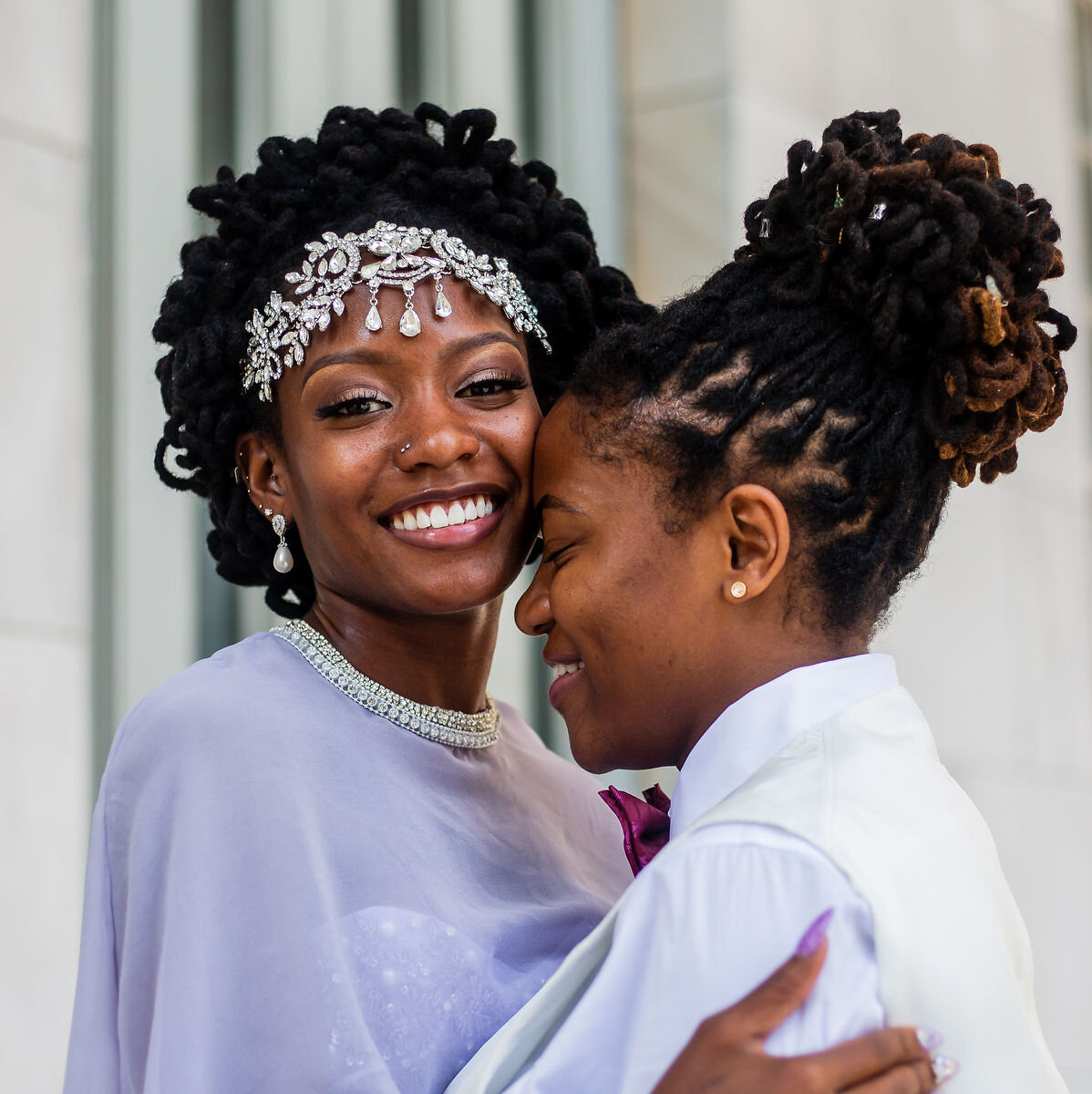 I wore a jeweled strapless lavender high-low mermaid dress with a jeweled sheer capelet and jeweled shoes. I was 100% sure I didn’t want to wear white, so I chose lavender because it promotes peace, majesty, femininity, youth and vitality. My headpiece and earrings did an amazing job at keeping my sparkle consistent from head to toe.