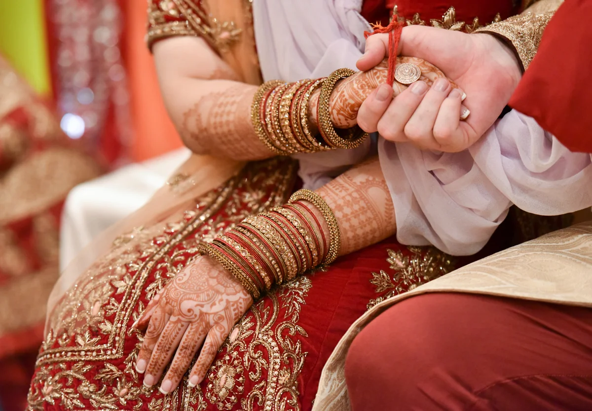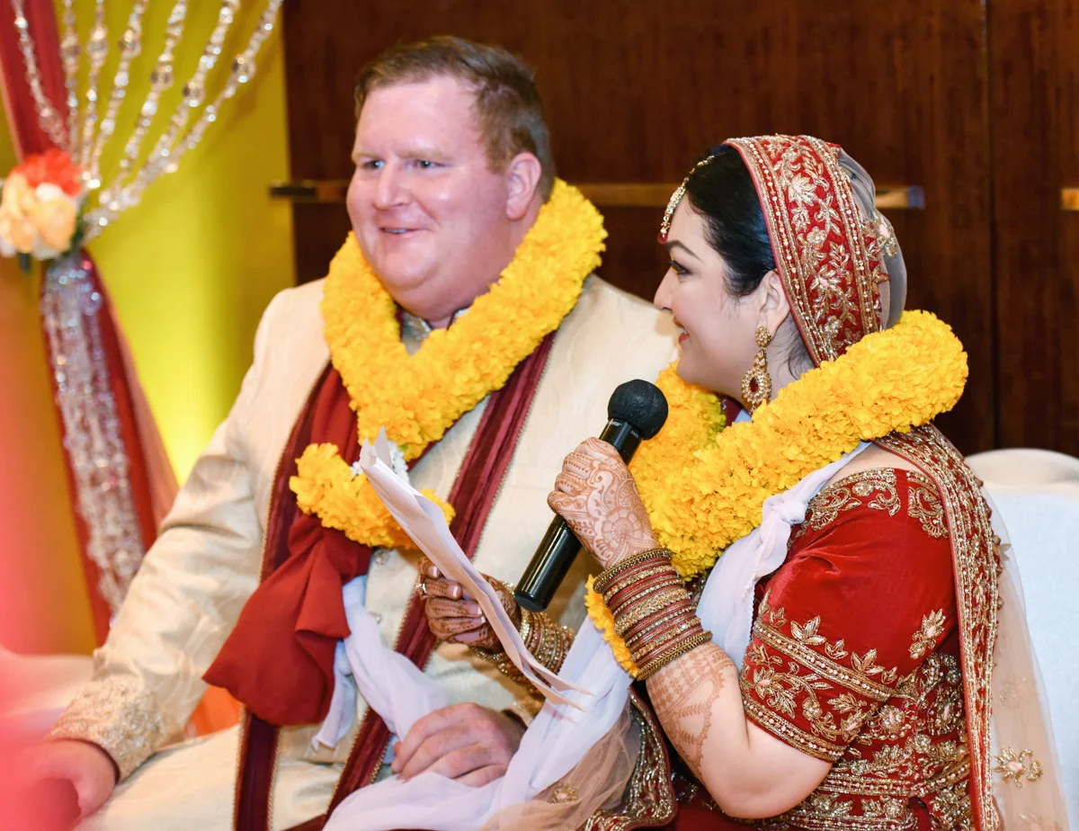 I had two wedding gowns for our wedding: a white one for the church ceremony, and a red and gold one for the Indian ceremony.