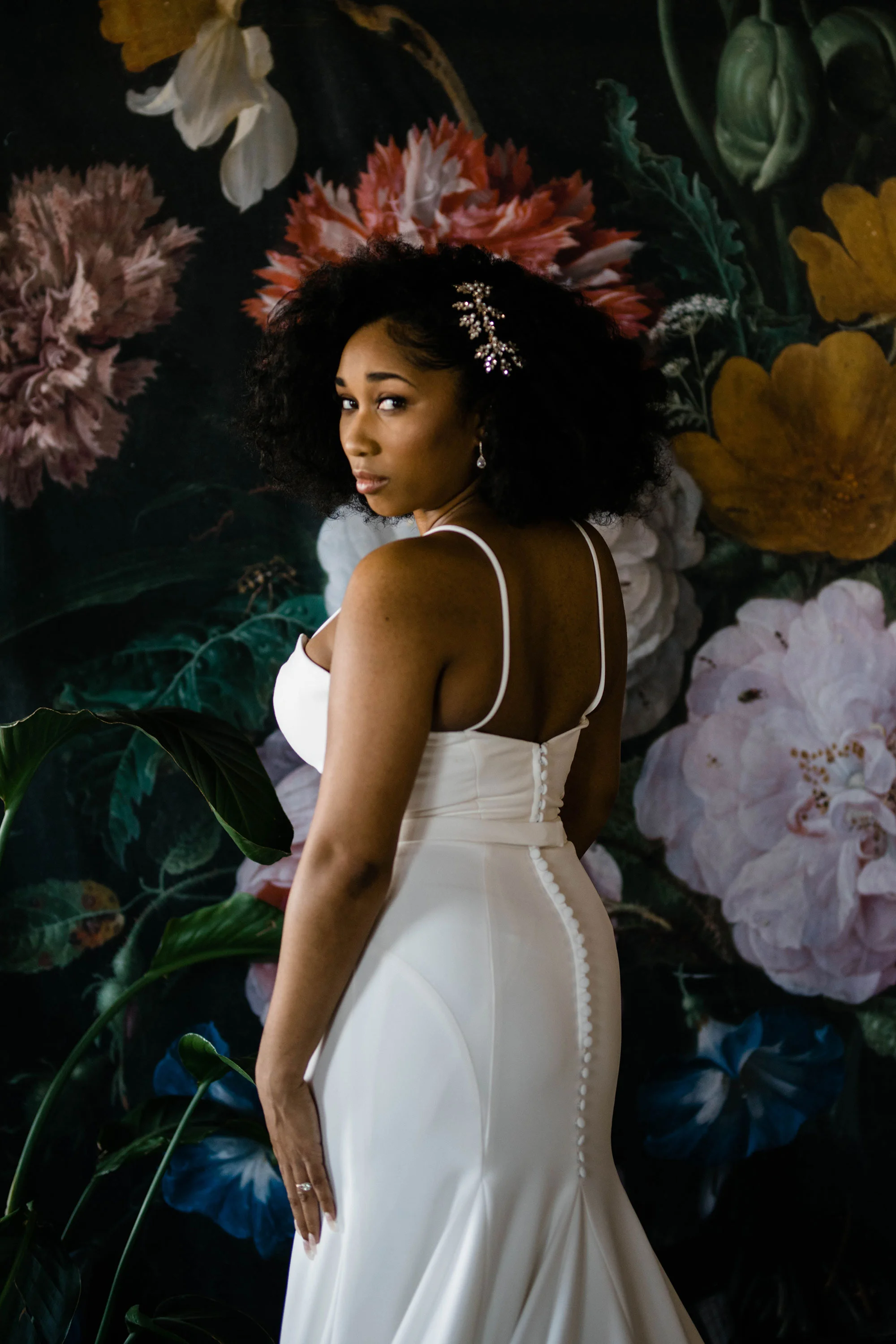 This option seemed to be the best of both worlds for us. It allowed our team to find modern, chic, well-made gown options for our clients at an attainable price point while removing the pressure of designing gowns from scratch. We've kept the lines and details of the gowns very simple, so we can guide our clients through personalizing their bridal look once the gown arrives in the shop.