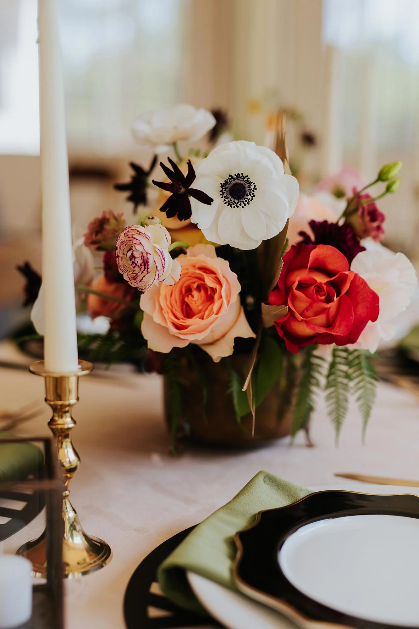 /As a group of friendors (that’s a group of wedding vendors who are all friends, for those who don’t know), we have the honor of working at Seven Springs a lot, but we've noticed that a lot of our clients want to let the venue speak for itself and they tend to air on the side of neutral when it comes to floral and table design choices.