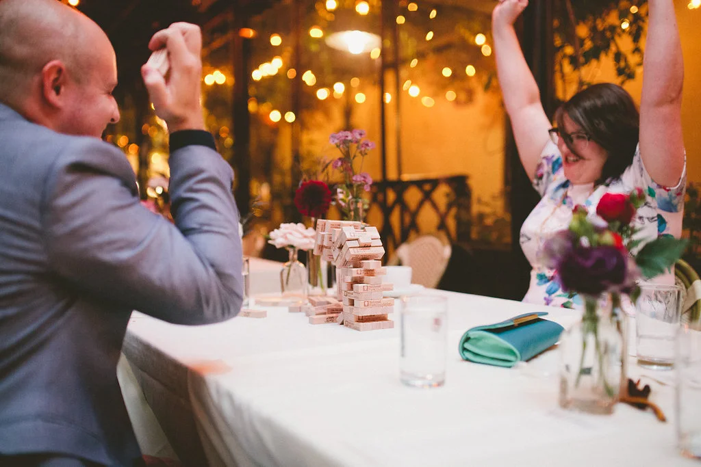 Jenga Game at Mahsino + Graham’s Seattle Wedding Reception. Photo by Bri McDaniel Photography.